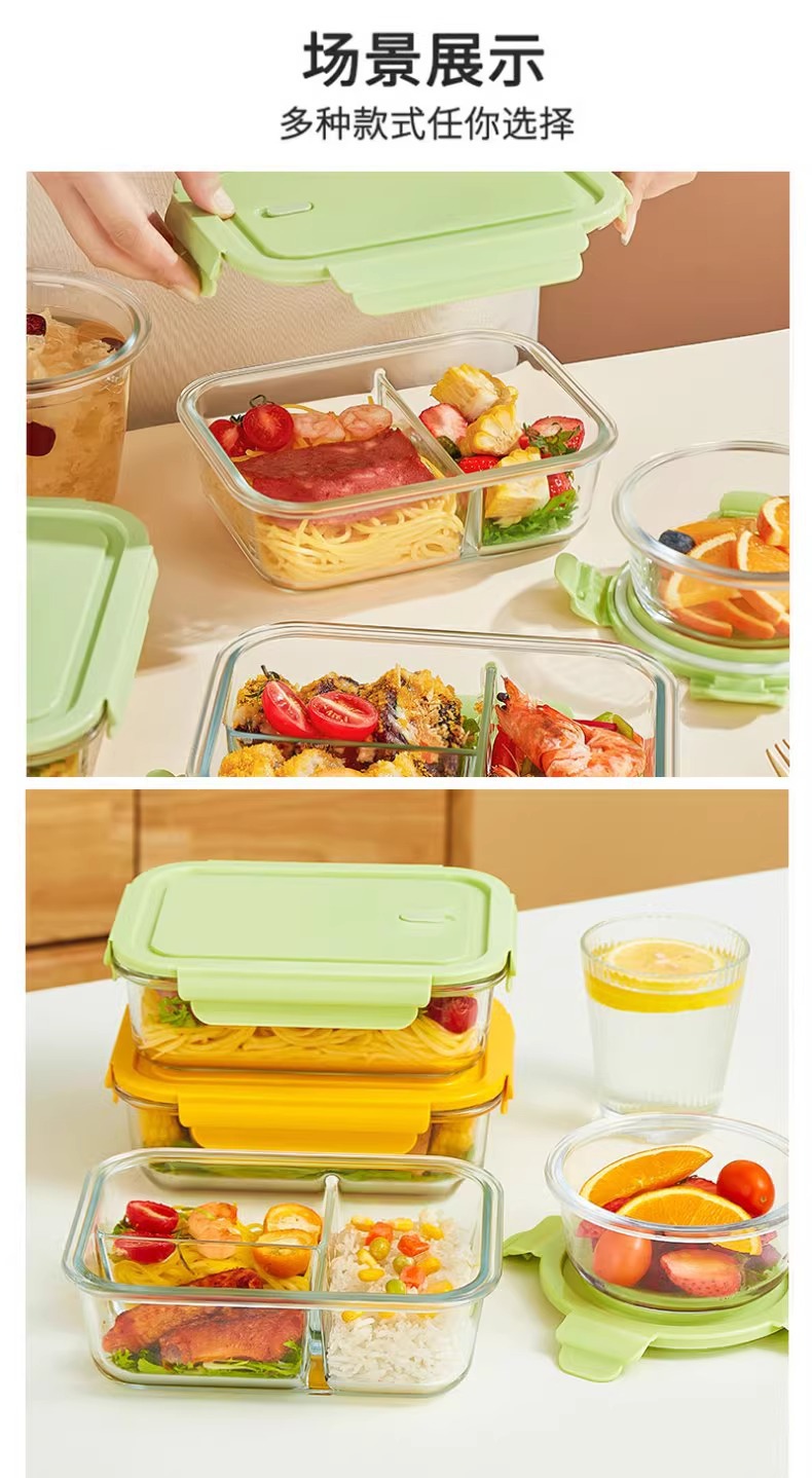 La lonchera de vidrio con alto contenido de borosilicato se puede calentar en el horno microondas, redonda cuadrada, lonchera para estudiantes de oficina, horno, tazón fresco