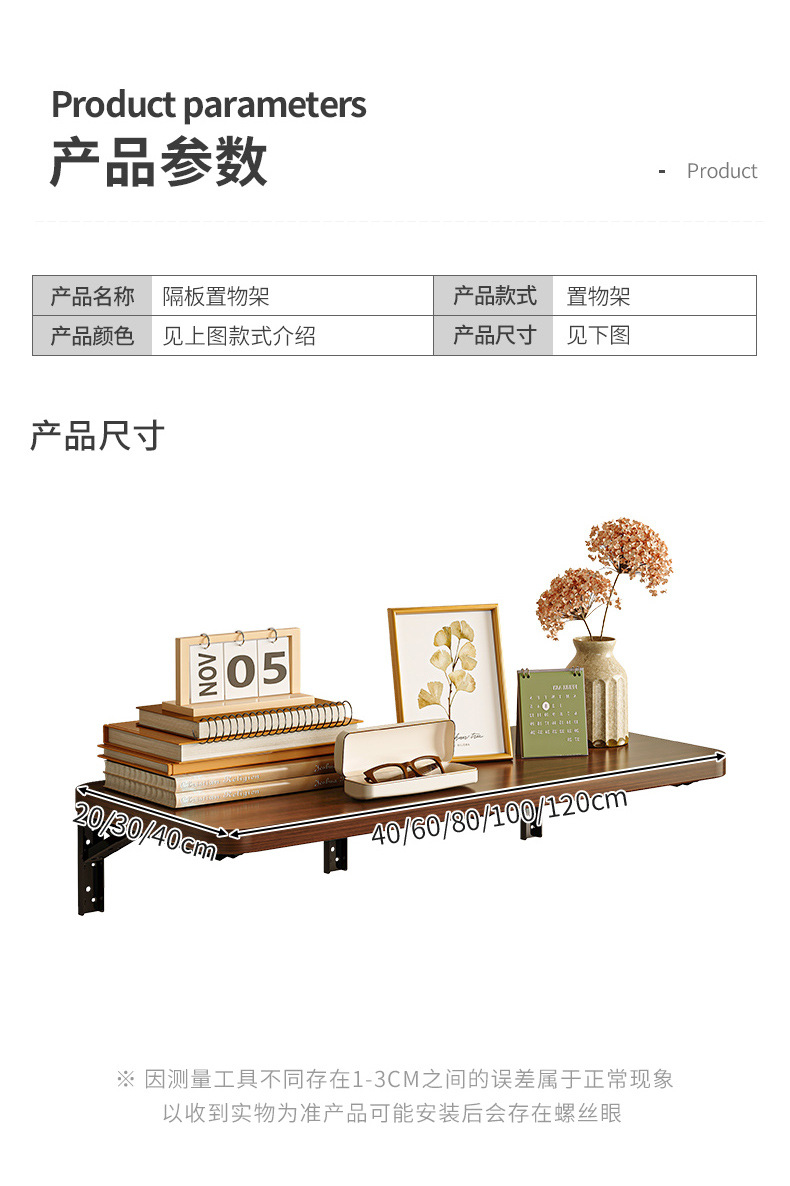 | Color | 白色20X40CM【赠送免钉胶+2个折叠支架+膨胀螺丝+水平仪】,白色20X60CM【赠送免钉胶+2个折叠支架+膨胀螺丝+水平仪】,白色20X80CM【赠送免钉胶+2个折叠支架+膨胀螺丝+水平仪】,白色20X120CM【赠送免钉胶+2个折叠支架+膨胀螺丝+水平仪】,胡桃色20X40CM【赠送免钉胶+2个折叠支架+膨胀螺丝+水平仪】,胡桃色20X60CM【赠送免钉胶+2个折叠支架+膨胀螺丝+水平仪】,胡桃色20X80CM【赠送免钉胶+2个折叠支架+膨胀螺丝+水平仪】,白色30X40CM【赠送免钉胶+2个折叠支架+膨胀螺丝+水平仪】,白色30X60CM【赠送免钉胶+2个折叠支架+膨胀螺丝+水平仪】,白色30X80CM【赠送免钉胶+2个折叠支架+膨胀螺丝+水平仪】,白色30X100CM【赠送免钉胶+2个折叠支架+膨胀螺丝+水平仪】,白色30X120CM【赠送免钉胶+2个折叠支架+膨胀螺丝+水平仪】,胡桃色30X40CM【赠送免钉胶+2个折叠支架+膨胀螺丝+水平仪】,胡桃色30X60CM【赠送免钉胶+2个折叠支架+膨胀螺丝+水平仪】,胡桃色30X80CM【赠送免钉胶+2个折叠支架+膨胀螺丝+水平仪】,胡桃色30X100CM【赠送免钉胶+2个折叠支架+膨胀螺丝+水平仪】,胡桃色30X120CM【赠送免钉胶+2个折叠支架+膨胀螺丝+水平仪】,白色40X40CM【赠送免钉胶+2个折叠支架+膨胀螺丝+水平仪】,白色40X80CM【赠送免钉胶+2个折叠支架+膨胀螺丝+水平仪】,白色40X100CM【赠送免钉胶+2个折叠支架+膨胀螺丝+水平仪】,白色40X120CM【赠送免钉胶+2个折叠支架+膨胀螺丝+水平仪】,胡桃色40X40CM【赠送免钉胶+2个折叠支架+膨胀螺丝+水平仪】,胡桃色40X60CM【赠送免钉胶+2个折叠支架+膨胀螺丝+水平仪】,胡桃色40X80CM【赠送免钉胶+2个折叠支架+膨胀螺丝+水平仪】,胡桃色40X100CM【赠送免钉胶+2个折叠支架+膨胀螺丝+水平仪】,胡桃色40X120CM【赠送免钉胶+2个折叠支架+膨胀螺丝+水平仪】 |