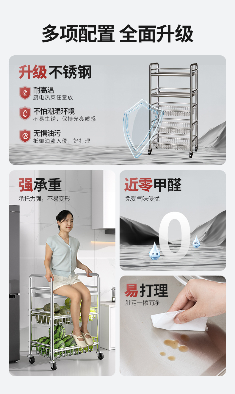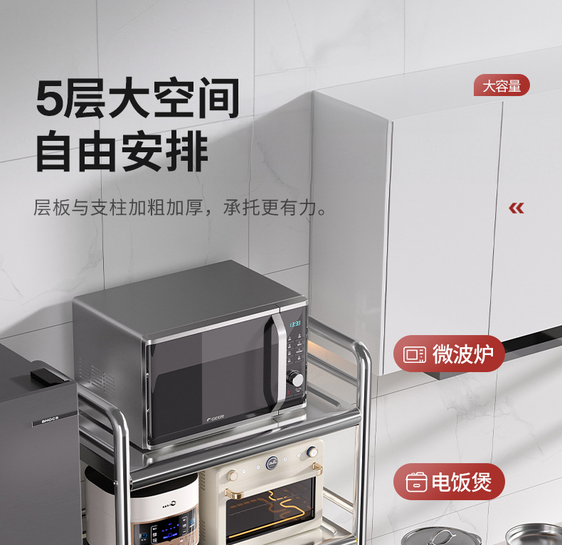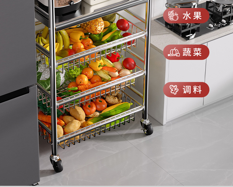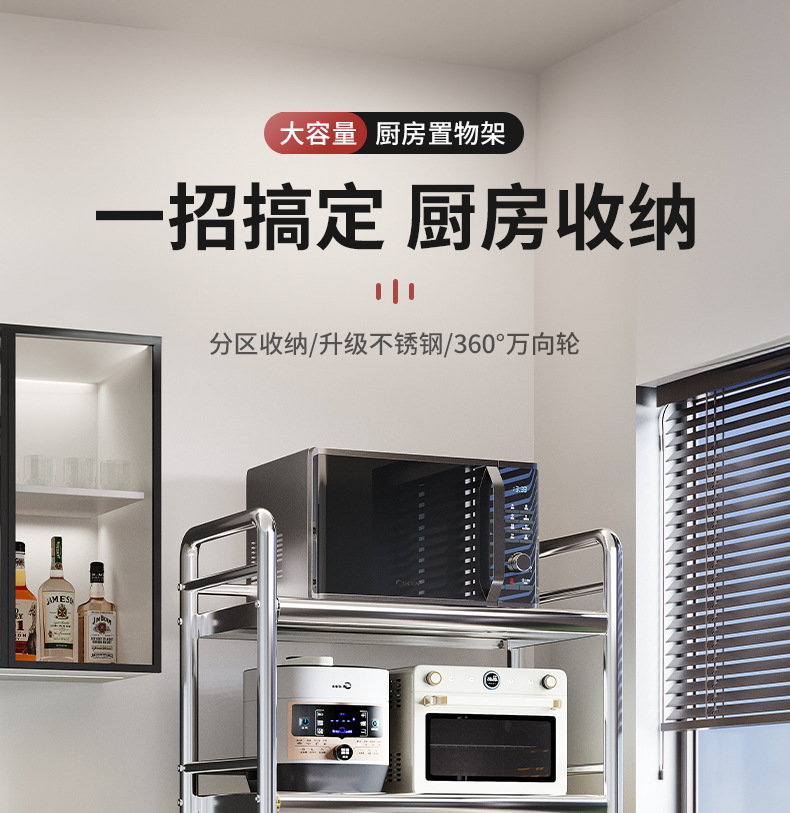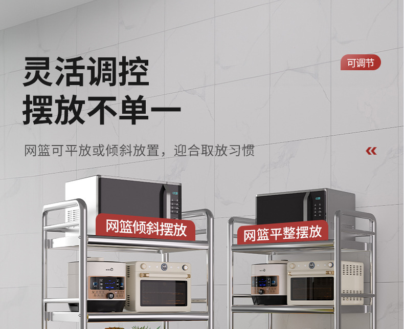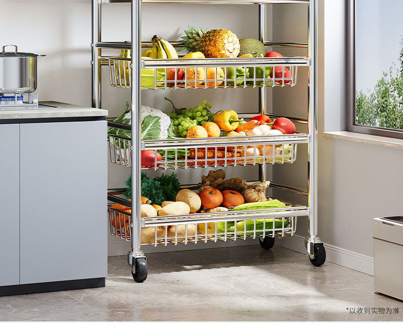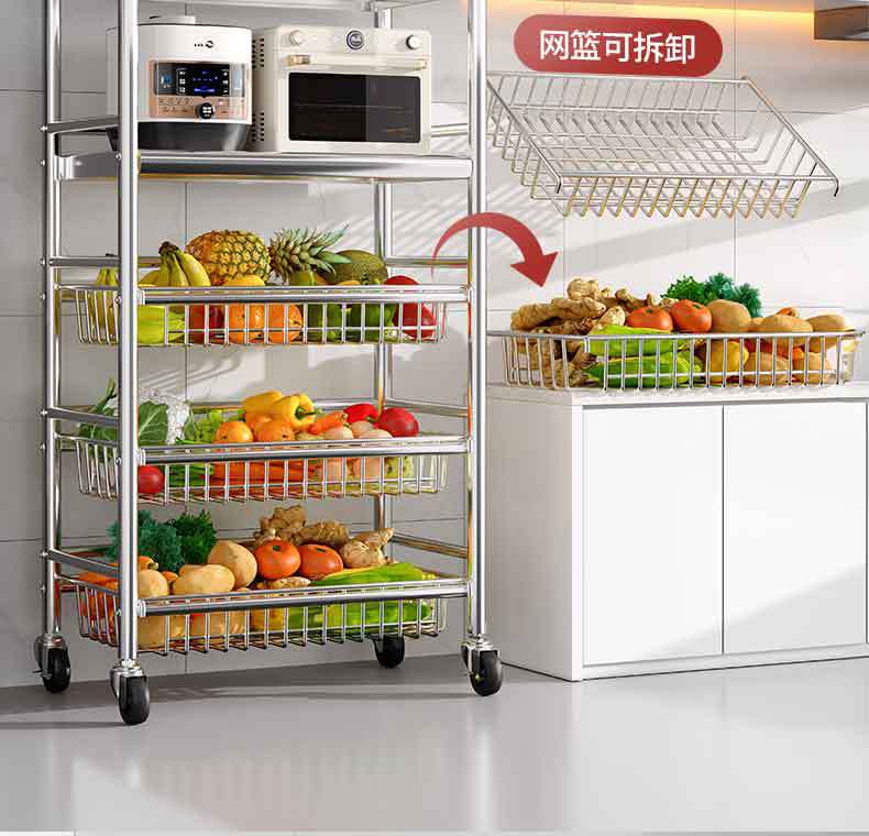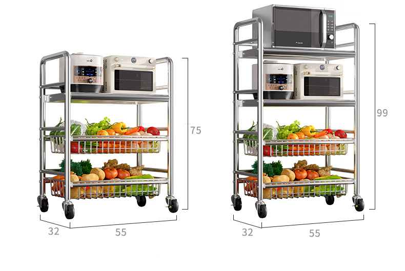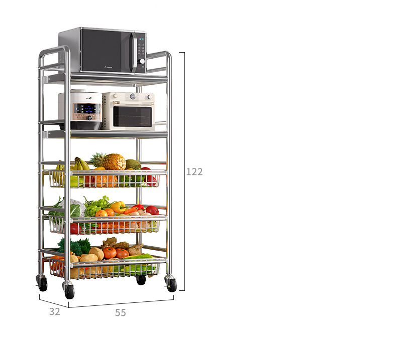 Estante de almacenamiento de cestas de verduras de cocina de acero inoxidable estante de almacenamiento multifuncional de horno de microondas multicapa