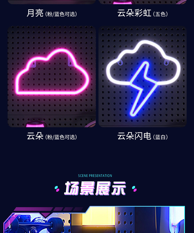| Color | Mango del juego, símbolo del juego, cohete bicolor, Arco Iris de cinco colores, rayo de nubes, Arco Iris de nubes, meteoro bicolor, murciélago de la luna, rayo azul, rayo rosa, astronauta azul, planeta azul, planeta rosa, nube azul, estrella azul, estrella rosa, Luna azul, luna rosa |