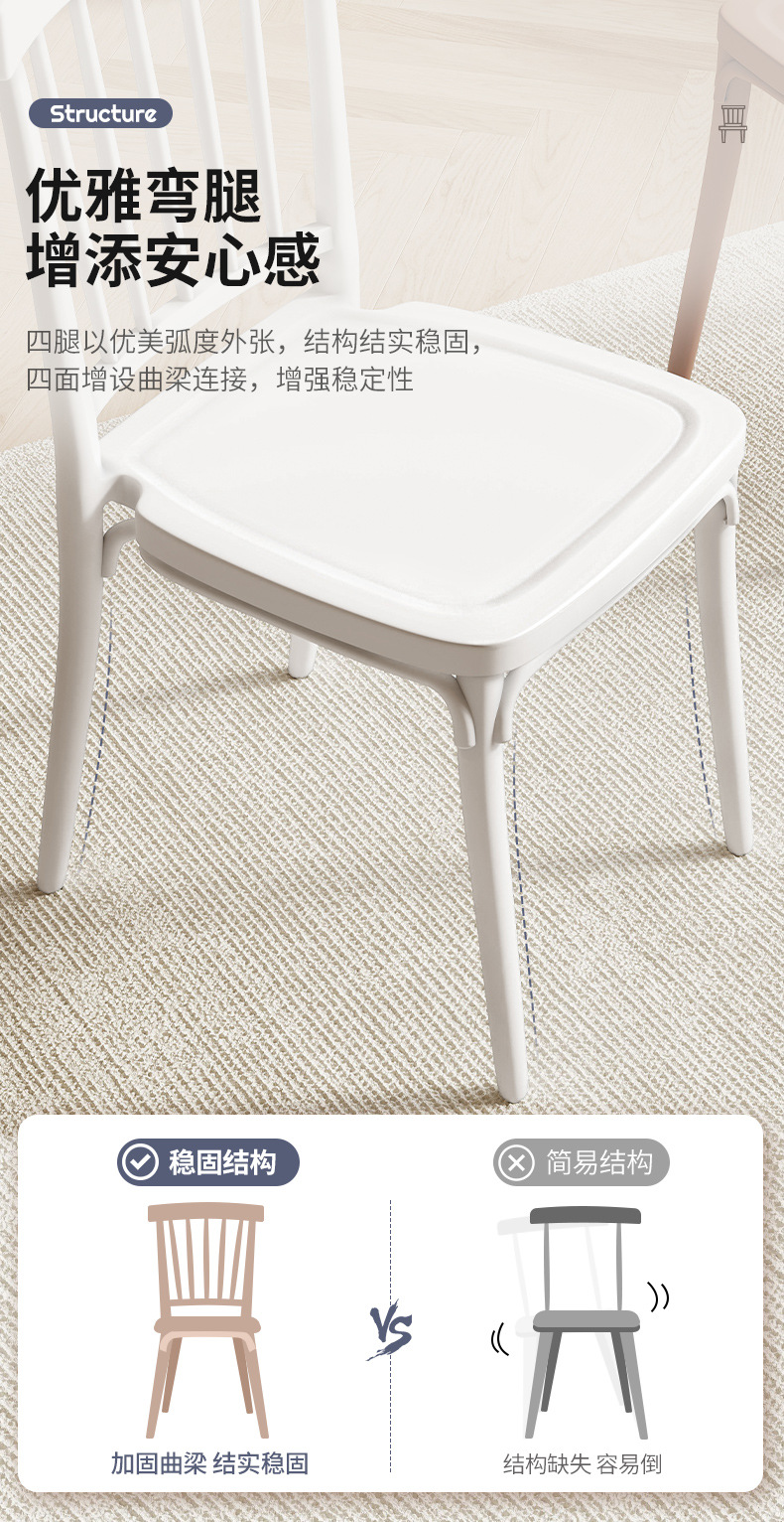 Silla de comedor con respaldo de plástico engrosada sala de alquiler hogar estilo crema Silla de comedor SILLA DE Windsor mesa de comedor taburete puesto grande