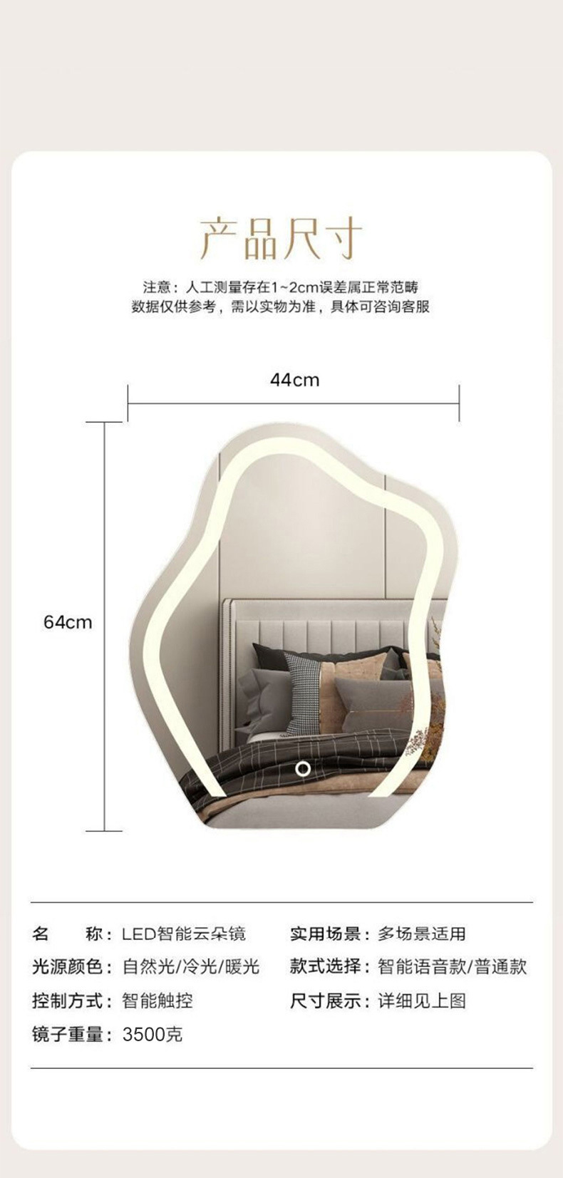 Tocador nube maquillaje espejo escritorio LED luz espejo tocador dormitorio elegante vestidor espejo con luz ins estilo