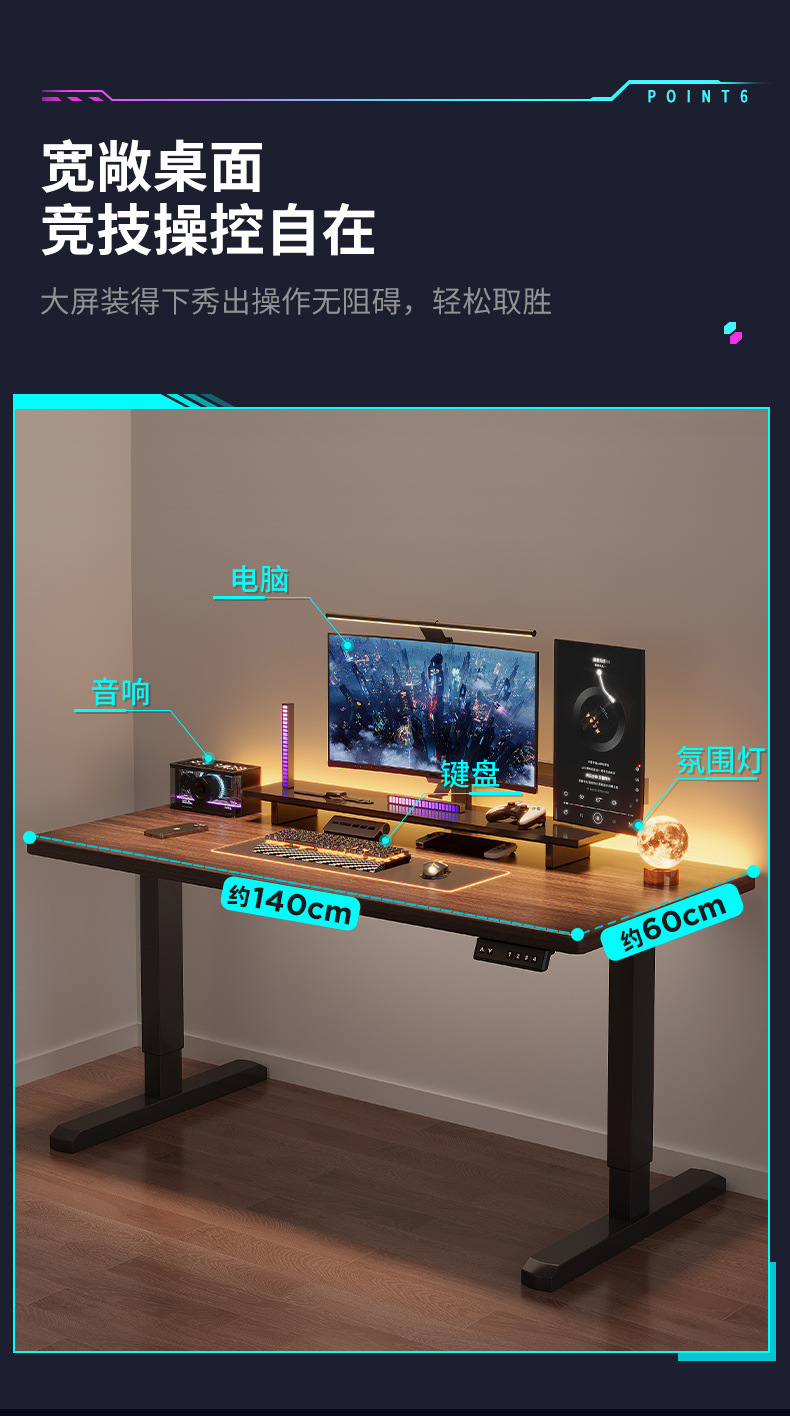 Mesa de elevación eléctrica de madera maciza mesa de ordenador mesa de elevación de hogar pierna nogal e-sports mesa escritorio de oficina Banco DE TRABAJO