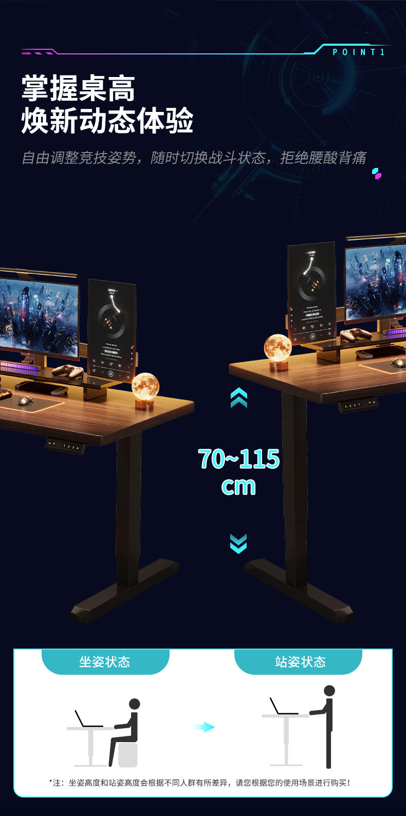 [Elevación manual 75-120cm] Mesa elevadora de alta fibra de carbono para deportes electrónicos
