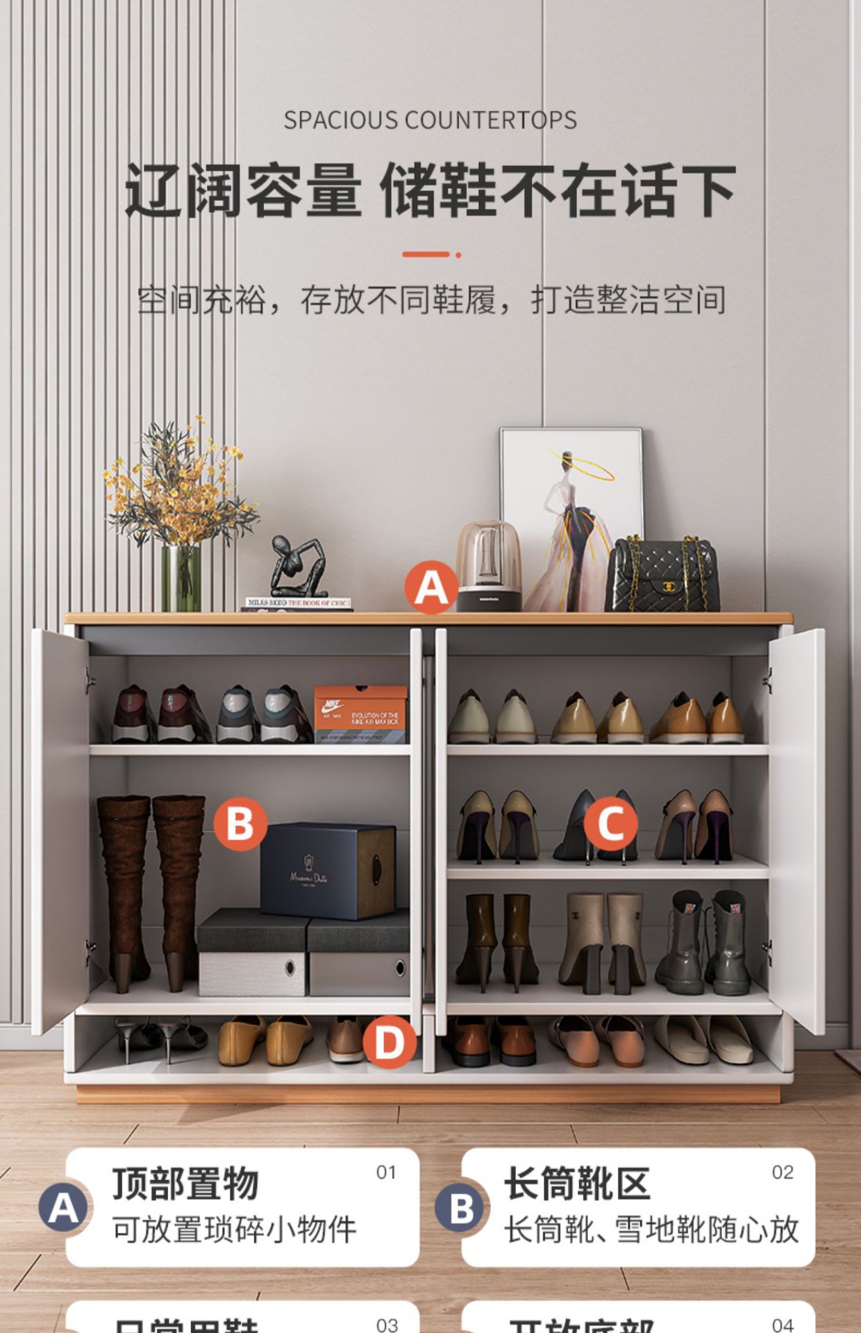 [Actualización de cuatro puertas] 120-32-100 blanco cálido + color nogal sudamericano, ensamblaje
