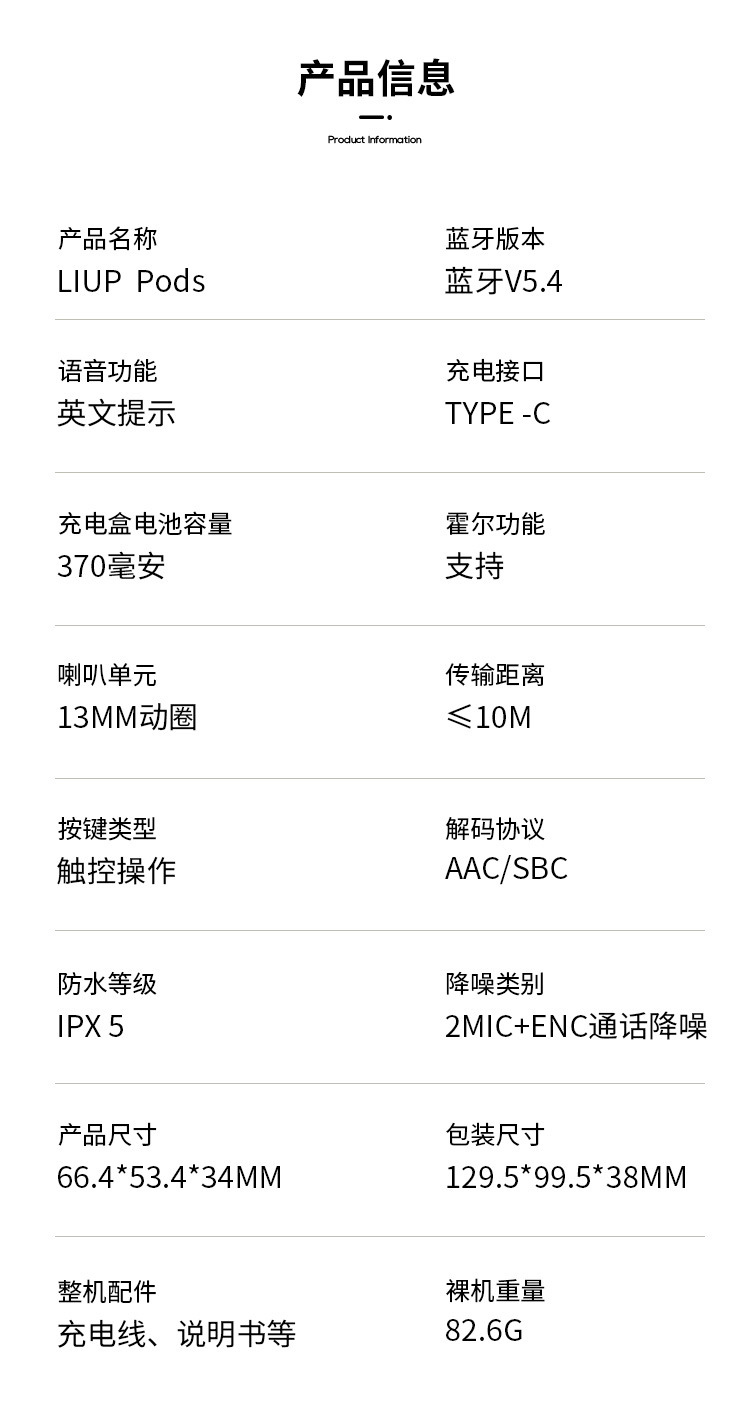 | Función | Impermeable,Reducción de ruido,Luz de respiración,Duración de la batería,Función de llamada,Control de voz,Música de apoyo,Esports de baja latencia,Otros |