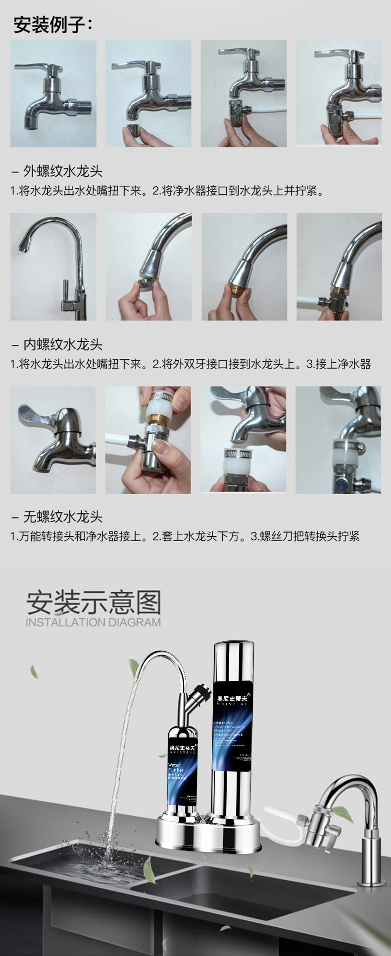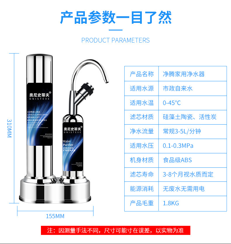| Capacidad | Purificador de agua de doble cilindro de acero inoxidable [onisteve], purificador de agua de un solo cilindro [modelo y transparente], purificador de agua de dos etapas [modelo y transparente], purificador de agua de galvanoplastia |