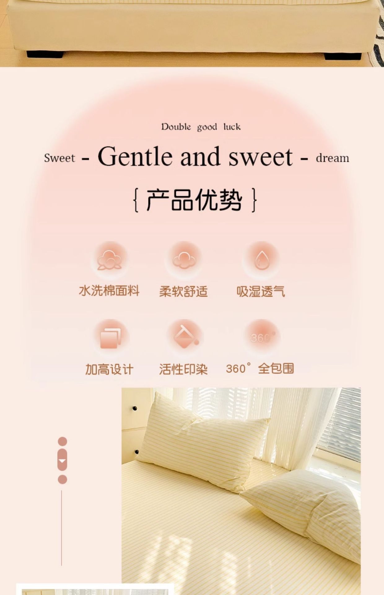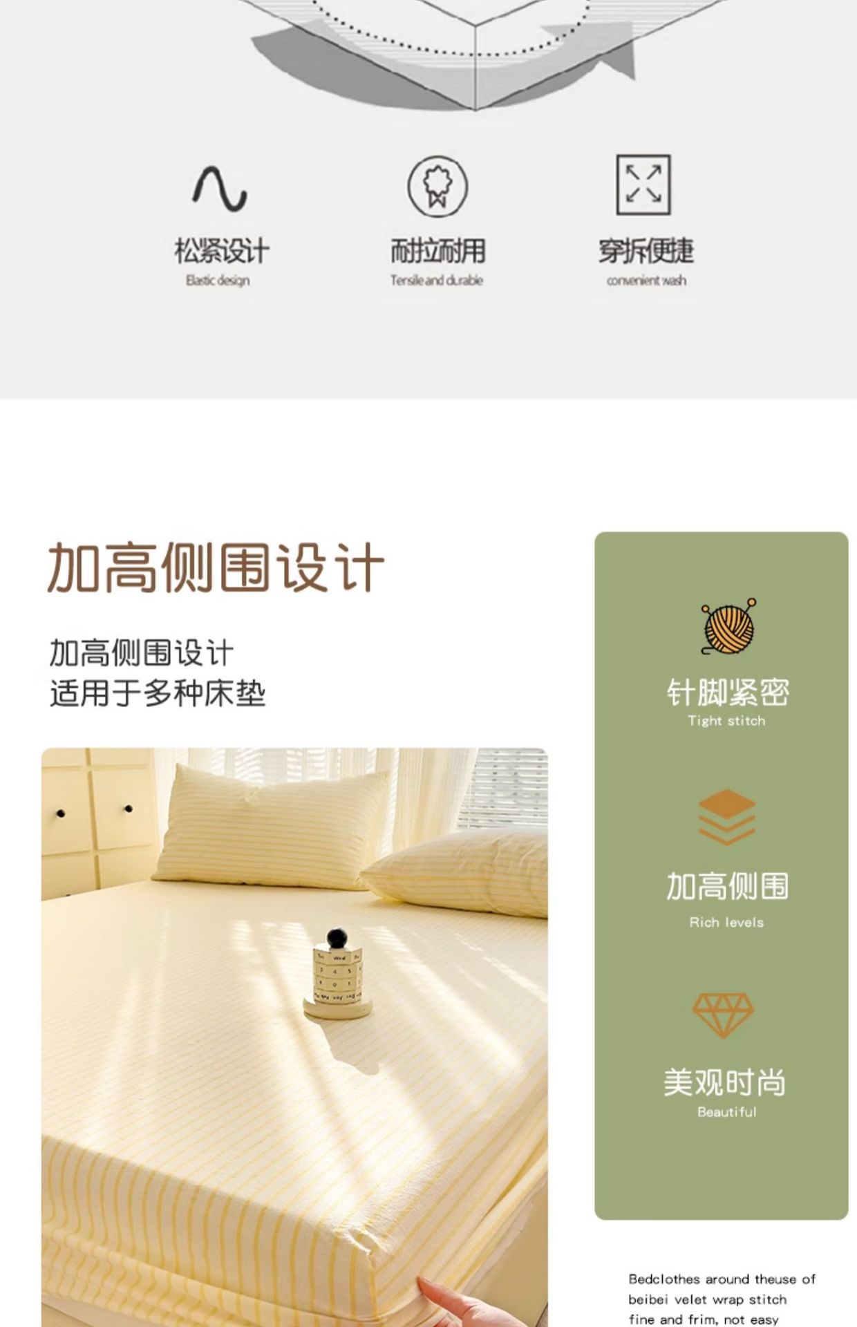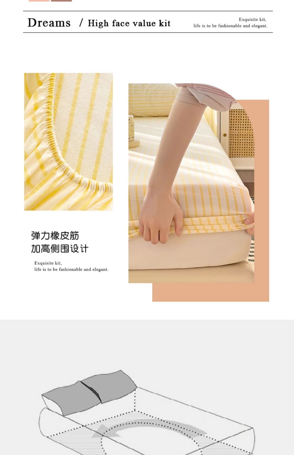 | Especificaciones de tamaño | Sombrilla individual: 90x200cm [Diseño todo incluido para un fácil servicio],Sombrilla de cama de una sola pieza-120x200cm [adecuado para colchones de 5-25 de espesor],Sombrilla de cama de una sola pieza-150x200cm [adecuado para colchones de 5-25 de espesor],Sombrilla individual-180x200cm [adecuado para colchones de 5-25 de espesor],Sombrilla de cama de una sola pieza-200x220cm [adecuado para colchones de 5-25 de espesor],Sombrilla de cama de dos piezas [una funda de almohada de 90x200cm],Sombrilla de cama de dos piezas [una funda de almohada de 120x200cm],Juego de sábanas de tres piezas [un par de fundas de almohada de 150x200cm],Juego de sábanas de tres piezas [un par de fundas de almohada de 180x200cm],Juego de sábanas de tres piezas [un par de fundas de almohada de 200x220cm],Ropa de cama individual-160x230 [Adecuado para camas 0.9-1.2],Ropa de cama individual-200x230 [Adecuado para camas 1.35-1.5],Ropa de cama individual-230x245 [Adecuado para camas 1.8-2.0],Juego de sábanas de dos piezas [una funda de almohada para sábanas 160x230],Juego de sábanas de tres piezas [un par de fundas de almohada para sábanas 200x230],Juego de sábanas de tres piezas [un par de sábanas y fundas de almohada 230x245] |