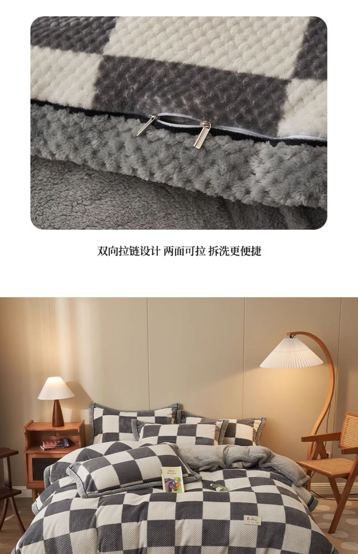 | Especificaciones de tamaño | Funda de edredón individual de 150*200cm [doble cara más terciopelo resistente al frío y al calor],Funda de edredón individual de 180*220cm [doble cara más terciopelo resistente al frío y al calor],Funda de edredón individual de 200*230cm [doble cara más terciopelo resistente al frío y al calor],Funda de edredón individual de 220*240cm [doble cara más terciopelo resistente al frío y al calor],Juego de sábanas de 1,2 m de tres piezas [funda de edredón 150*200cm sábanas 160*230cm],Juego de sábanas de cuatro piezas de 1,5 m [funda de edredón 200*230cm sábanas 230*250cm],Juego de cuatro piezas de cama de 1,8 m [funda de edredón 200*230cm sábana 230*250cm],Juego de cuatro piezas de sábanas de 2.0m [funda de edredón 220*240cm sábanas 230*250cm],Juego de cuatro piezas de cama de 1,5 m [funda de edredón 200*230cm funda de cama 150*200cm],Juego de cuatro piezas de cama de 1,8 m [funda de edredón 200*230cm funda de cama 180*200cm] |