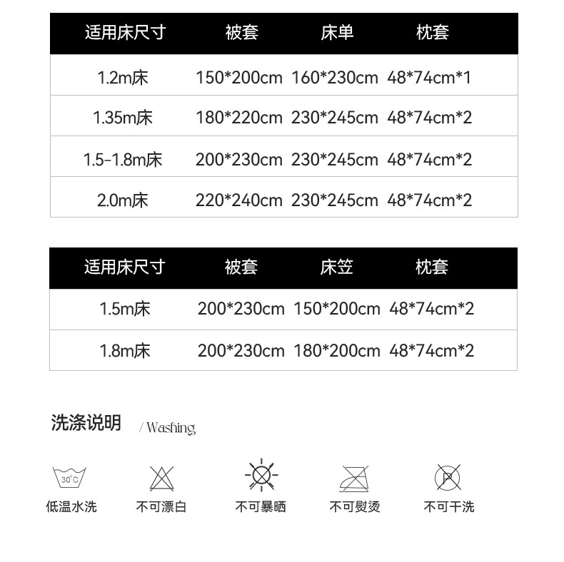 | Especificaciones de tamaño | Cama de 0,9 M [juego de tres piezas de sábanas] - adecuado para núcleo de edredón de 150 x 200 cm, cama de 1,2 m [juego de tres piezas de sábanas] - adecuado para núcleo de edredón de 150 x 200 cm, cama de 1,5 m [juego de cuatro piezas de sábanas] - adecuado para núcleo de edredón de 200 x 230cm, cama de 1,8 m [juego de cuatro piezas de sábanas] - adecuado para núcleo de edredón de 200 x 230cm, cama de 2,0 M [juego de cuatro piezas de sábanas] - adecuado para núcleo de edredón de 220x 240cm, cama de 1,5 m [juego de cuatro piezas de edredón de hoja] - adecuado para núcleo de edredón de 1,8 m [juego de cuatro piezas de edredón de edredón de hoja] - adecuado para 230 x 230 cm núcleo |