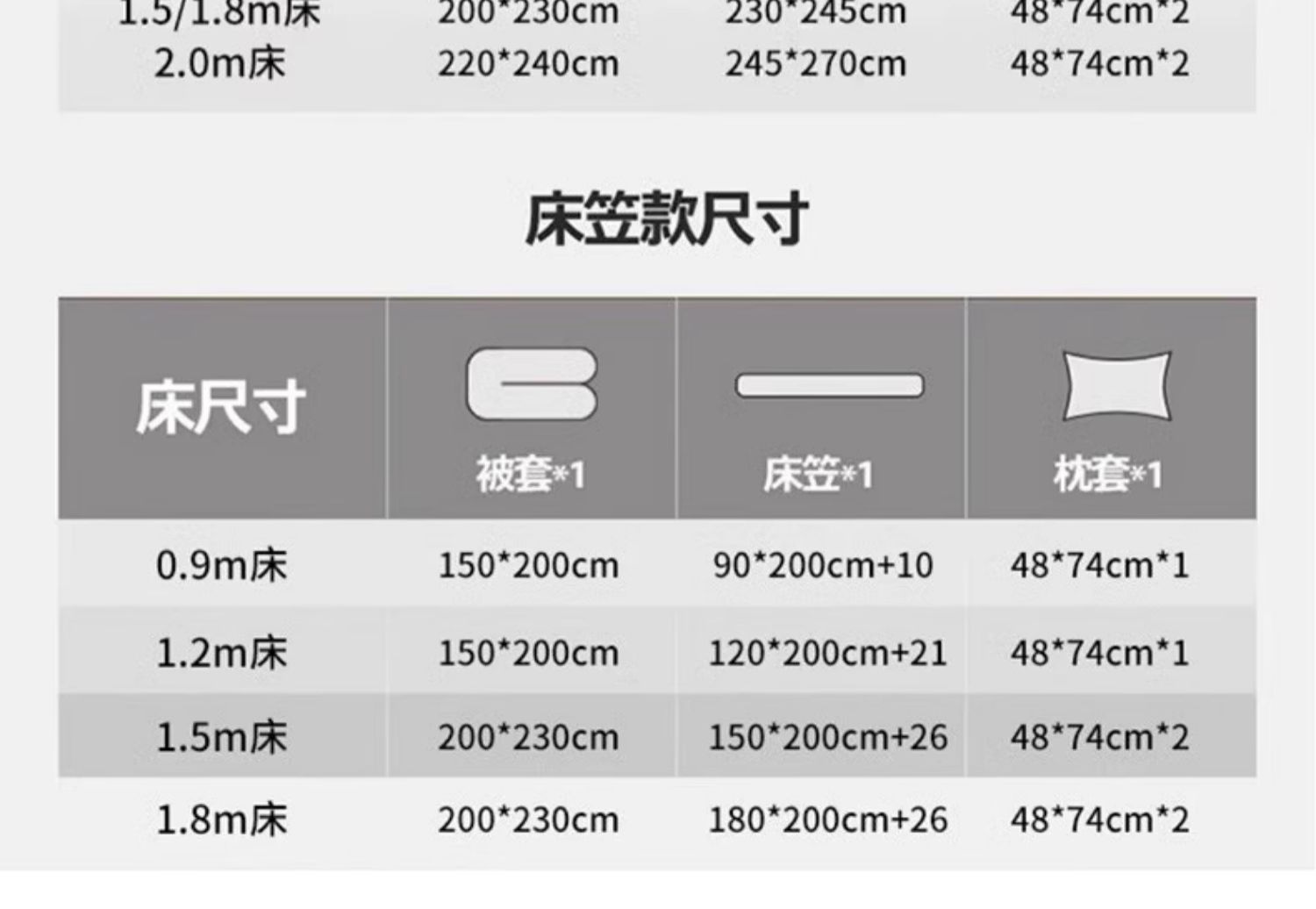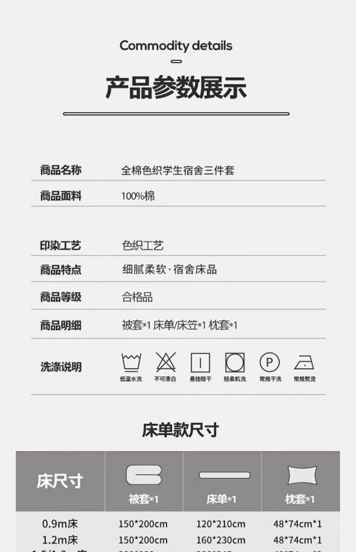 | Especificaciones de tamaño | 90x190cm床单款六件套【床单+被套+枕套+被芯约5斤+枕芯+90x190床垫5cm】,90x190cm床单款六件套【床单+被套+枕套+被芯约5斤+枕芯+90x190床垫9cm】,90x200cm床单款六件套【床单+被套+枕套+被芯约5斤+枕芯+90x200床垫5cm】,90x200cm床单款六件套【床单+被套+枕套+被芯约5斤+枕芯+90x200床垫9cm】,90x190cm床笠款六件套【床笠+被套+枕套+被芯约5斤+枕芯+90x190床垫5cm】,90x190cm床笠款六件套【床笠+被套+枕套+被芯约5斤+枕芯+90x190床垫9cm】,90x200cm床笠款六件套【床笠+被套+枕套+被芯约5斤+枕芯+90x200床垫5cm】,90x200cm床笠款六件套【床笠+被套+枕套+被芯约5斤+枕芯+90x200床垫9cm】,90x190cm床垫套款六件套【床垫套+被套+枕套+被芯约5斤+枕芯+90x190床垫5cm】,90x190cm床垫套款六件套【床垫套+被套+枕套+被芯约5斤+枕芯+90x190床垫9cm】,90x200cm床垫套款六件套【床垫套+被套+枕套+被芯约5斤+枕芯+90x200床垫5cm】,90x200cm床垫套款六件套【床垫套+被套+枕套+被芯约5斤+枕芯+90x200床垫9cm】,【九件套】90*190床褥5cm+被套+床笠+枕套+150*200cm子母被2+4斤+枕芯+包装,【九件套】90*190床褥5cm高+被套+床笠+枕套+150*200cm子母被2斤4斤+2包装,【九件套】90*190床褥8cm高+被套+床笠+枕套+150*200cm子母被2斤+4斤+2包装,【九件套】90*190床褥8cm高+被套+床笠+枕套+150*200cm子母被2斤+4斤+枕芯+包装,【九件套】90*200床褥5cm高+被套+床笠+枕套+150*200cm子母被2斤+4斤+枕芯+包装,【九件套】90*200床褥5cm高+被套+床笠+枕套+枕芯+150*200cm子母被2斤+4斤+包装,【九件套】90*200床褥8cm高+被套+床笠+枕芯+枕套+150*200cm子母被2斤+4斤+包装,【九件套】90*200床褥8cm高+被套+床笠+枕套+150*200cm子母被2斤+4斤+枕芯+包装 |