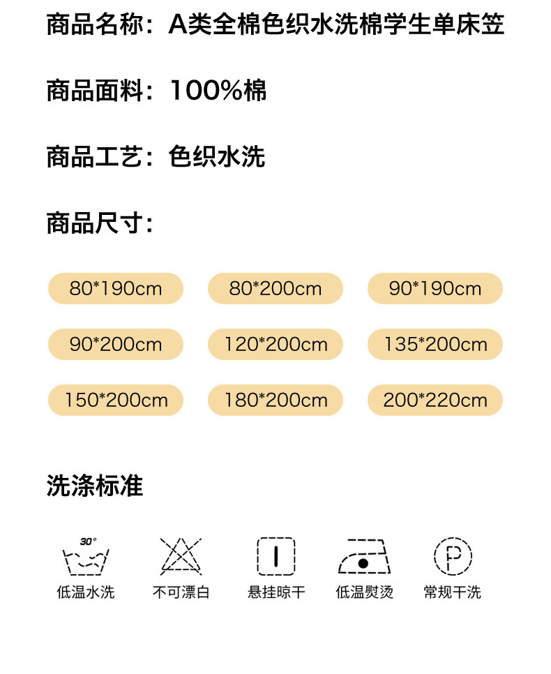 | Especificaciones de tamaño | Sombrilla individual: 90*190cm [adecuada para una altura de aproximadamente 4-15cm],Sombrilla individual: 90*200cm [adecuada para una altura de aproximadamente 4-15cm],Sombrilla individual: 120*200cm [adecuada para una altura de aproximadamente 5-25cm],Sombrilla individual: 150*200cm [adecuada para una altura de aproximadamente 5-25cm],Sombrilla individual: 180*200cm [adecuada para una altura de aproximadamente 5-25cm],Sombrilla individual: 200*220cm [adecuada para una altura de aproximadamente 5-25cm],Sombrilla de cama de dos piezas: una funda de almohada de cama de 90*190cm,Sombrilla de cama de dos piezas: una funda de almohada de cama de 90*200cm,Sombrilla de cama de dos piezas: una funda de almohada de cama de 120*200cm,Juego de sábanas de tres piezas: un par de sábanas y fundas de almohada de 150*200cm,Juego de cama de tres piezas: un par de fundas de almohada de cama de 180*200cm,Juego de tres piezas: un par de fundas de almohada de 200*220cm |
