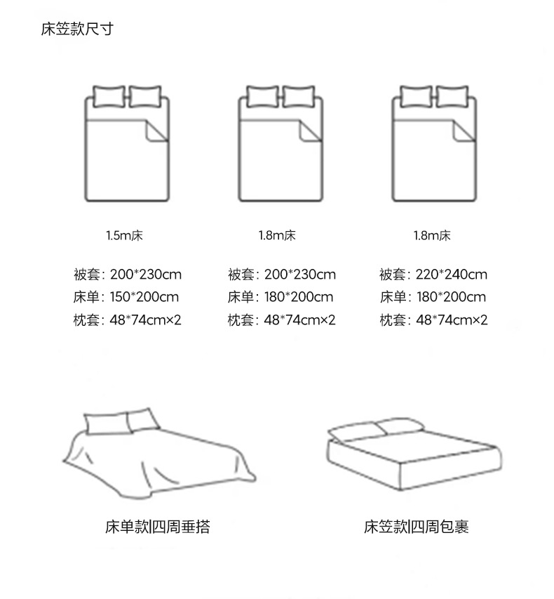 | Especificaciones de tamaño | 1,5 m [Juego de sábanas de cuatro piezas] adecuado para edredones de 200x230cm,1.8m [Juego de sábanas de cuatro piezas] adecuado para edredones de 200x230cm,2.0m [Juego de sábanas de cuatro piezas] adecuado para edredones de 220x240cm,1,5 m [juego de cuatro piezas] adecuado para edredones de 200x230cm,1,8 m [juego de cuatro sábanas] adecuado para edredones de 200x230cm |