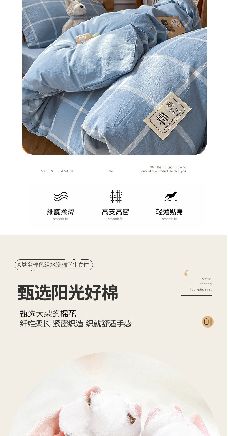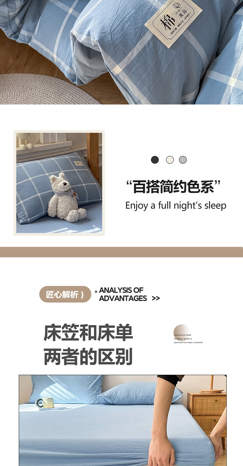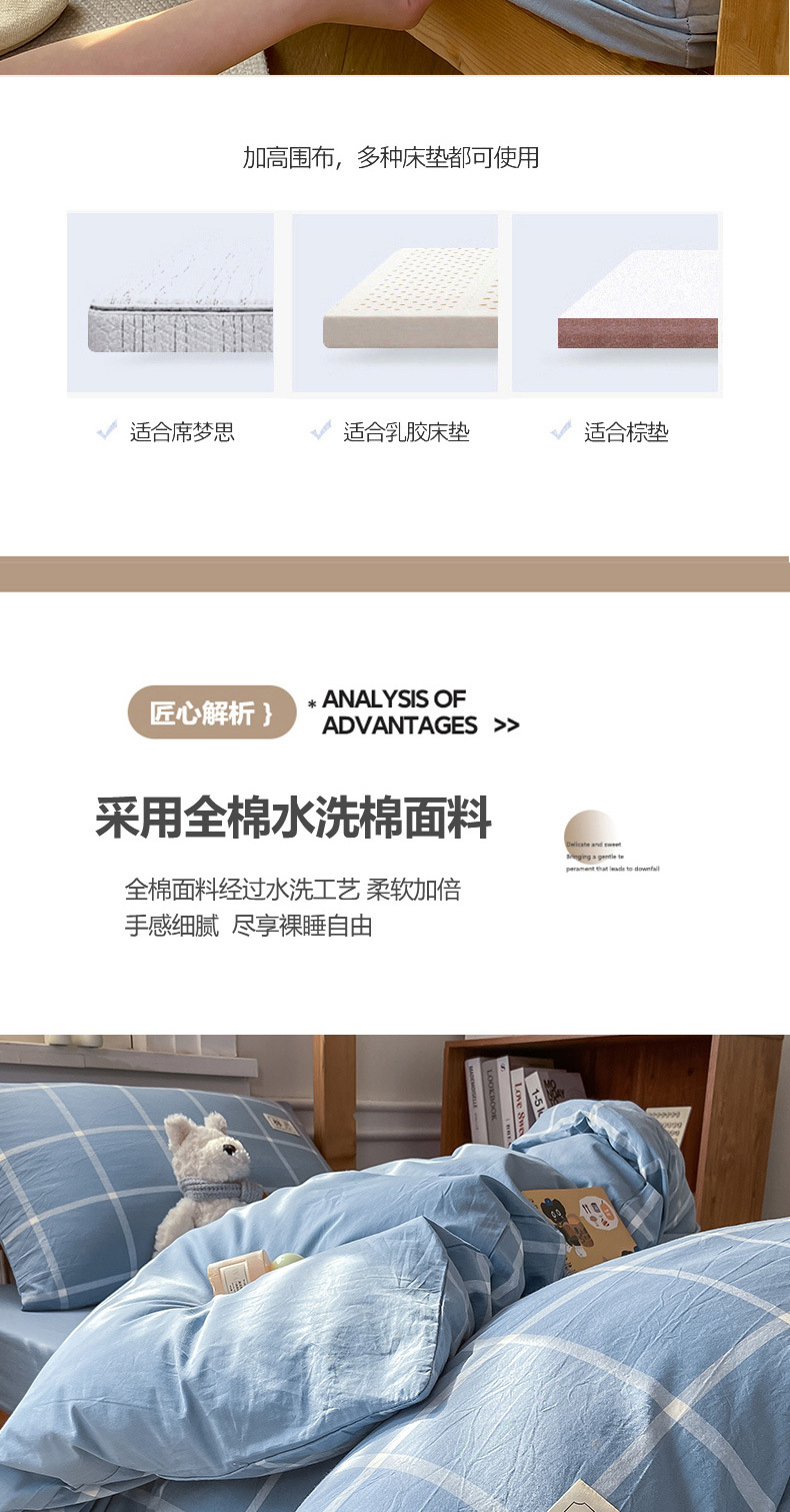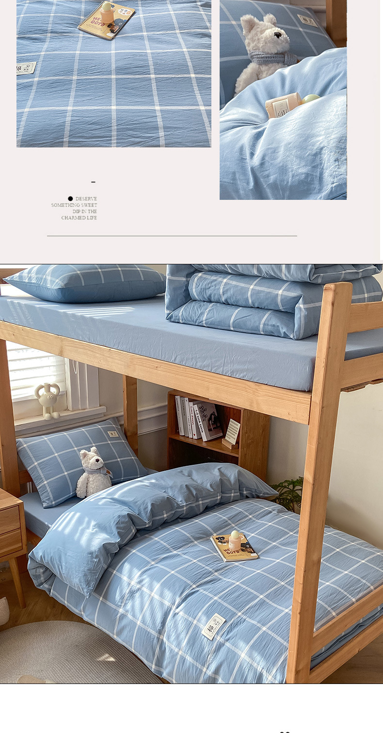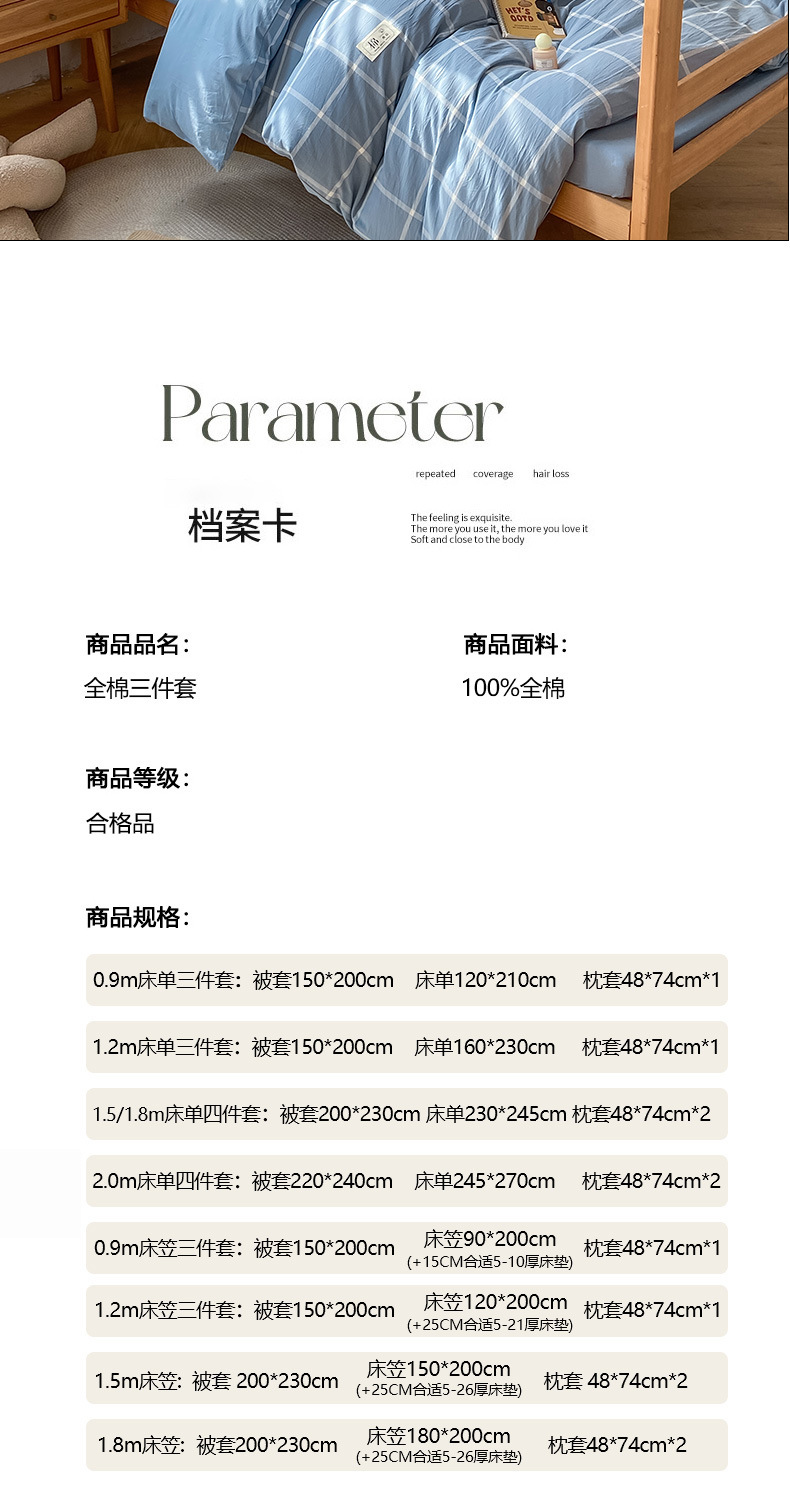 | Especificaciones de tamaño | Juego de tres piezas para estudiantes de 0,9 m [sábana 120*230 funda de edredón 150x200],Juego de sábanas de tres piezas de 1,2 m [sábanas 160x230 funda de edredón 150x200],Juego de sábanas de cuatro piezas de 1,5/1,8 m [sábanas 230x245 funda de edredón 200x230],Juego de sábanas de cuatro piezas de 2,0 m [sábanas 245x270 funda edredón 220x240],Juego de tres piezas de cama de 0,9 m [funda de cama 90x200 150x200],Juego de sábana de cama de 1,2 m de tres piezas [sábana de cama 120x200 funda de edredón 150x200],Juego de cuatro piezas de cama de 1,5 m [funda de cama 150x200 edredón 200x230],Juego de cuatro piezas de cama de 1,8 m [Juego de cama de 180x200 funda de edredón 200x230] |