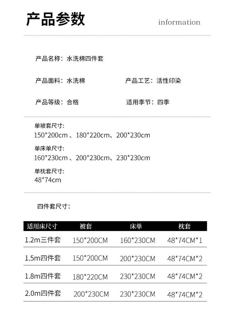 | Especificaciones de tamaño | Juego de sábanas de tres piezas de 0,9 m [funda de edredón de 150*200cm],Juego de sábanas de cuatro piezas de 1,5 m [funda de edredón de 200*230cm],Juego de sábanas de cuatro piezas de 1,8 m [funda de edredón de 200*230cm],Funda de edredón de 180*220cm para sábanas de cuatro piezas de 1,8 m |
