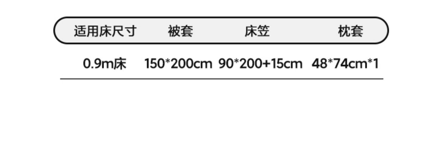 | Especificaciones de tamaño | Juego de sábanas de tres piezas de 0,9 m [150*200cm funda de edredón 120*230cm funda de almohada de sábana * 1],Juego de sábanas de tres piezas de 1.0m [150*200cm funda de edredón 160*230cm funda de almohada de sábana * 1],Juego de sábanas de 1,2 m de tres piezas [150*200cm funda de edredón 160*230cm funda de almohada de sábana * 1],Juego de tres piezas con sábana de 0,9 m [150*200cm funda de edredón 90*200cm funda de almohada con sábana * 1],Juego de tres piezas con funda de colchón de 0,9 m [150*200cm funda de edredón 90*200cm funda de almohada de colchón * 1] |