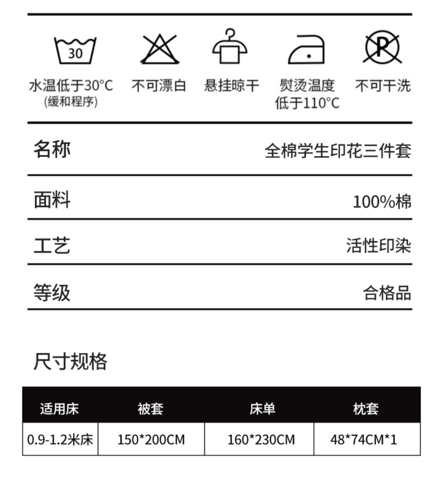 | Especificaciones de tamaño | Cama de 0,9 m [Juego de sábanas de tres piezas] Funda de edredón de sábanas Funda de almohada,Cama de 1,2 m [Juego de sábanas de tres piezas] Funda de edredón de sábanas Funda de almohada,Cama de 0,9 m [Juego de tres piezas con sábana] Funda de almohada con sábana de cama |