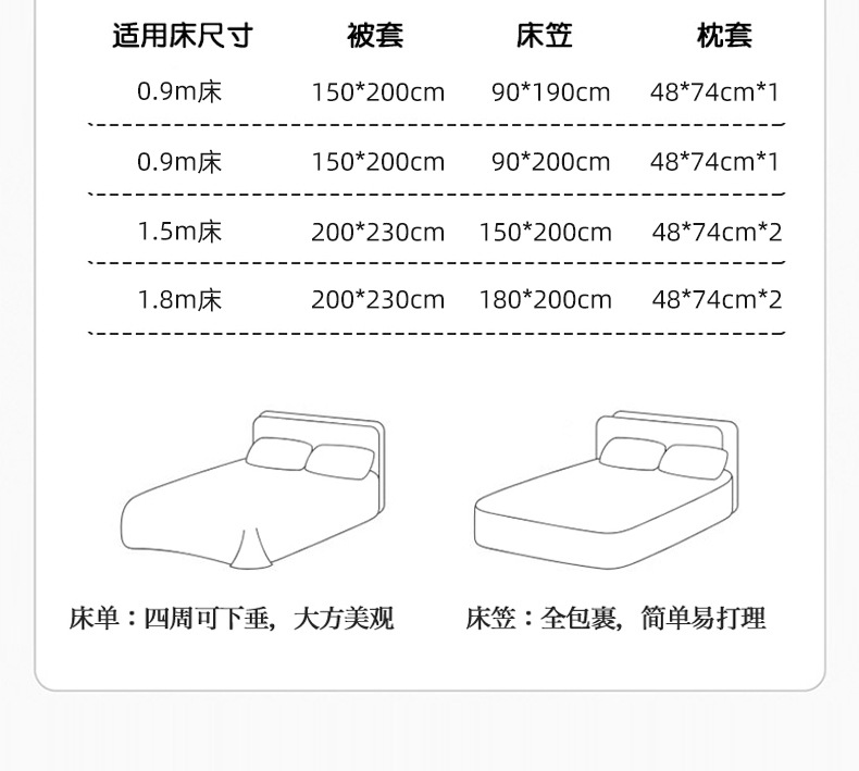 | Especificaciones de tamaño | Juego de sábanas de tres piezas de 0,9 m [funda de edredón de 150*200cm/sábana de 120*230cm],Juego de sábanas de 1,2 m de tres piezas [160*210cm funda de edredón/160*230cm sábanas],Juego de tres piezas con sábana de 0,9 m [funda de edredón de 150*200cm/sábana de 90*190cm],Juego de tres piezas con sábana de 0,9 m [funda de edredón de 150*200cm/sábana de 90*200cm],Juego de sábanas de cuatro piezas de 1,5 m [funda de edredón de 200*230cm/sábanas de 230*250cm],Juego de cuatro piezas de ropa de cama de 1,8 m [funda de edredón de 200*230cm/sábana de 230*250cm],Juego de cuatro piezas de sábanas de 2.0m [funda de edredón de 220*240cm/sábanas de 230*270cm],Juego de cuatro piezas de cama de 1,5 m [funda de edredón de 200*230cm/funda de cama de 150*200cm],Juego de cuatro piezas de cama de 1,8 m [funda de edredón de 200*230cm/funda de cama de 180*200cm] |