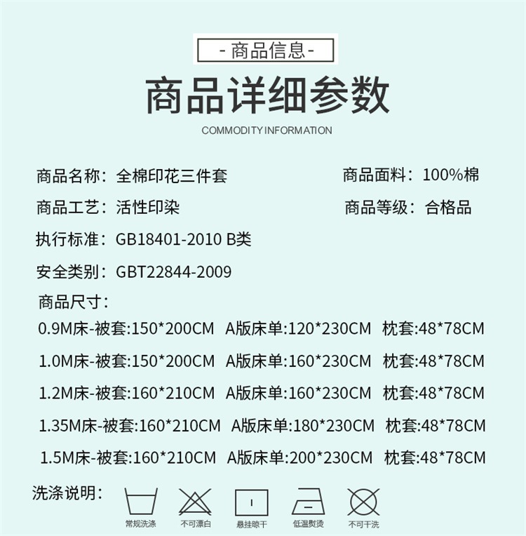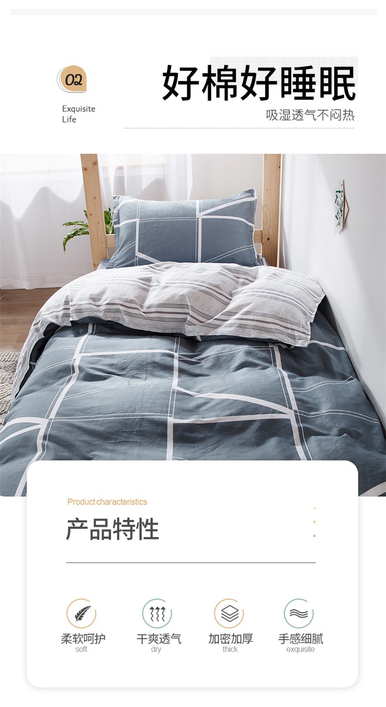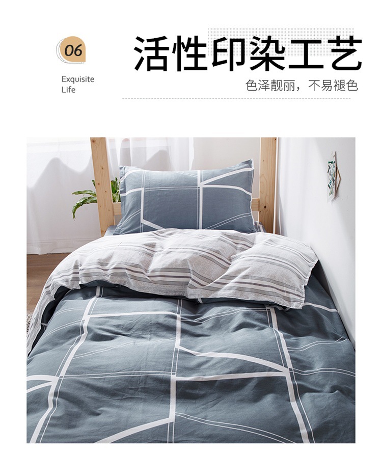 | Especificaciones de tamaño | Juego de sábanas de tres piezas de 0,9 m [funda de edredón 150*200cm sábanas 120*230cm],Sábana de tres piezas de 1.0m [funda de edredón 150*200cm sábana 160*230cm],Juego de sábanas de 1,2 m de tres piezas [funda de edredón 150*210cm sábanas 160*230cm] |