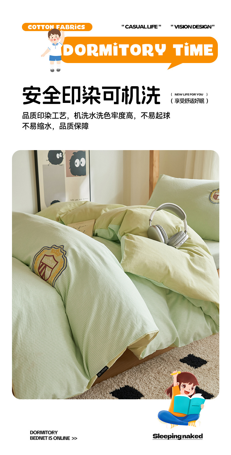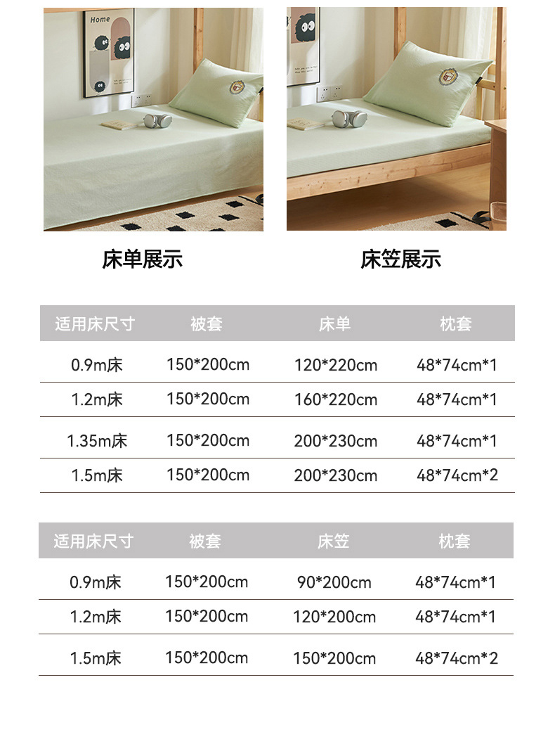 | Especificaciones de tamaño | Juego de sábanas de tres piezas de 0,9 m [funda de edredón de 150x200cm funda de almohada de sábana de 120x230cm],Juego de sábanas de tres piezas de 1,2 m [funda de edredón de 150x200cm 160x230cm funda de almohada de sábana],Juego de sábanas de tres piezas de 1.35m [Funda de edredón de 150x200cm Funda de almohada de sábana de 200x230cm],Juego de sábanas de cuatro piezas de 1,5 m [150x200cm funda de edredón 160x230cm par de sábanas fundas de almohada],Juego de cama de tres piezas de 0,9 m [funda de edredón de 150x200cm funda de almohada de cama de 120x230cm],Juego de tres piezas de cama de 1,2 m [funda de edredón de 150x200cm funda de almohada de cama de 120x200cm],Juego de cuatro piezas de cama de 1,5 m [funda de edredón de 150x200cm Un par de funda de almohada de cama de 150x200cm] |