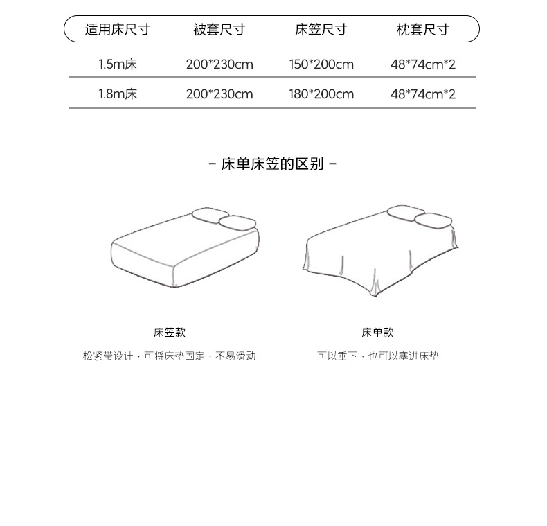 | Especificaciones de tamaño | Cama de 1,5 m [Juego de sábanas de cuatro piezas]-Adecuado para edredón de 200x230cm,Cama de 1,8 m [Juego de sábanas de cuatro piezas]-Adecuado para edredón de 200x230cm,Cama de 2.0m [Juego de sábanas de cuatro piezas]-Adecuado para edredón de 220x240cm,Cama de 1,5 m [juego de cuatro piezas de sábana]-adecuada para edredón de 200x230cm,Cama de 1,8 m [juego de cuatro piezas de sábana]-adecuado para edredón de 200x230cm,Cama de 1,8 m [juego de cuatro piezas con sábana ampliada]-adecuado para edredón de 200x230cm |