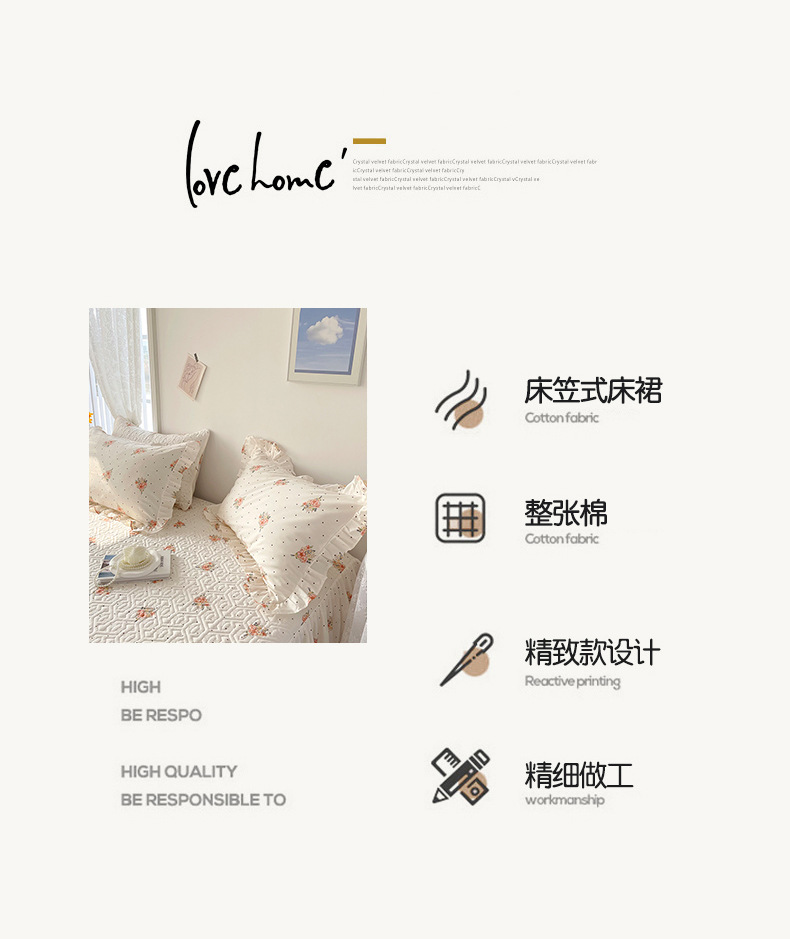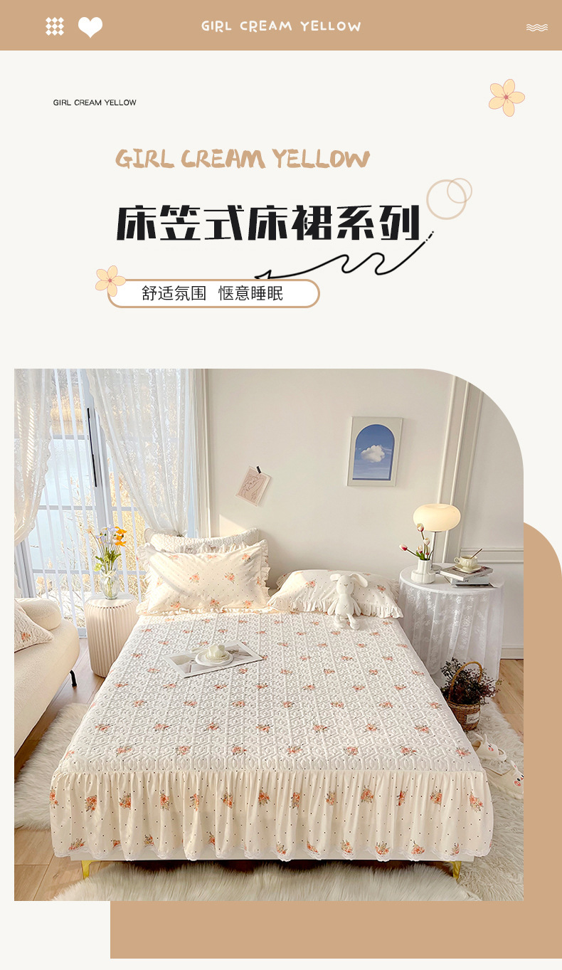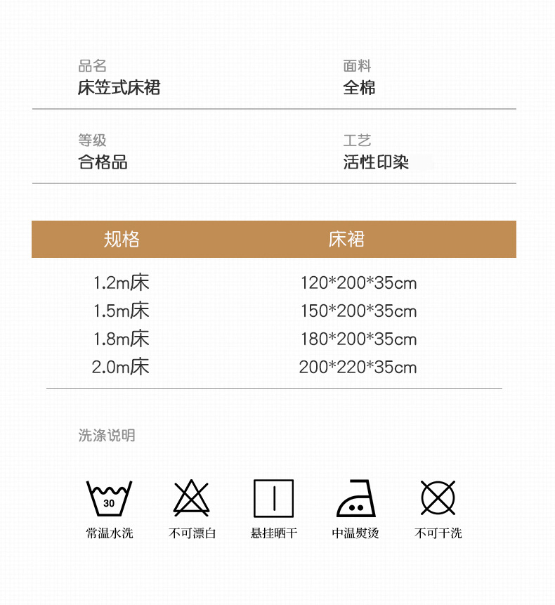 | Especificaciones de tamaño | Falda de cama individual 120x200cm [altura de la falda 35cm],Falda de cama individual 150x200cm [altura de la falda 35cm],Falda de cama individual 180x200cm [altura de la falda 35cm],Falda de cama individual 200x220cm [altura de la falda 35cm],Falda de cama de tres piezas [un par de fundas de almohada de falda de cama individual de 120x200cm],Falda de cama de tres piezas [un par de fundas de almohada de falda de cama individual de 150x200cm],Falda de cama de tres piezas [un par de fundas de almohada de falda de cama individual de 180x200cm],Falda de cama de tres piezas [un par de fundas de almohada de falda de cama individual de 200x220cm] |