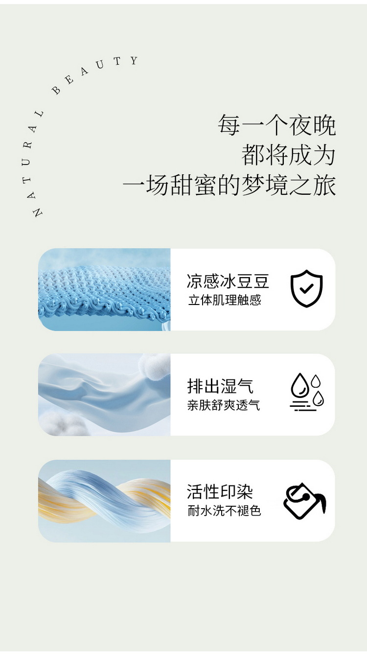 | Tipo de flor | Qimeng-Grey [Clase A, grado materno e infantil, frío pero no resbaladizo, durmiendo desnudo],Qimeng-Ka [Clase A, grado materno e infantil, frío pero no resbaladizo, durmiendo desnudo],Qimeng-Green [Clase A, grado materno e infantil, fresco pero no resbaladizo en hielo, durmiendo desnudo],Qi Meng-Fan [Clase A, grado materno e infantil, frío pero no resbaladizo, durmiendo desnudo],Qimeng-Blue [Clase A, grado materno e infantil, frío pero no resbaladizo de hielo, durmiendo desnudo] |