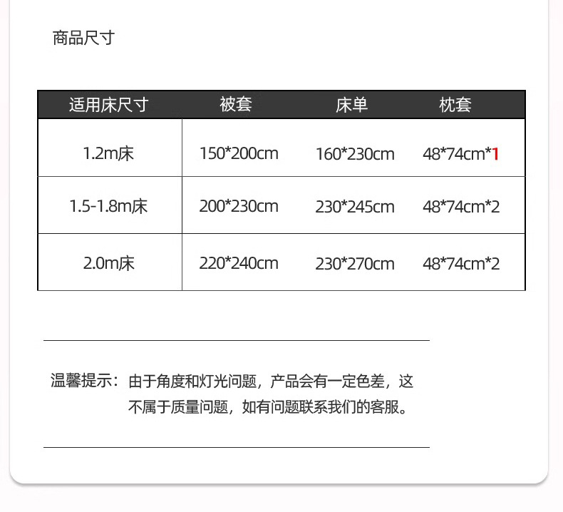 | Especificaciones de tamaño | Cama de 0,9 m [Juego de sábanas de tres piezas]-Adecuado para edredón de 150x200cm,Cama de 1,2 m [Juego de sábanas de tres piezas]-adecuado para núcleo de edredón de 150x200cm,Cama de 1,5 m [Juego de sábanas de cuatro piezas]-Adecuado para edredón de 200x230cm,Cama de 1,8 m [Juego de sábanas de cuatro piezas]-Adecuado para edredón de 200x230cm,Cama de 2.0m [Juego de sábanas de cuatro piezas]-Adecuado para edredón de 220x240cm,Cama de 1,5 m [juego de cuatro piezas de sábana]-adecuada para edredón de 200x230cm,Cama de 1,8 m [juego de cuatro piezas de sábana]-adecuado para edredón de 200x230cm |