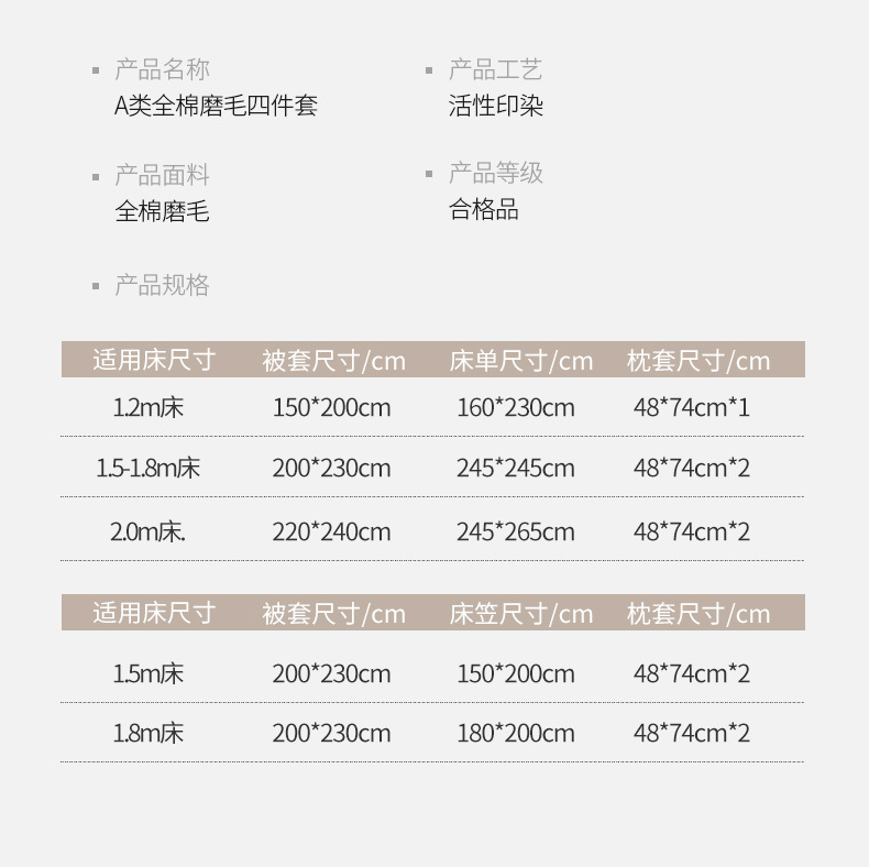 | Especificaciones de tamaño | Cama de 0,9 m [traje de tres piezas para estudiantes]-Adecuado para edredón 150x200,Cama de 1,2 m [traje de tres piezas para estudiantes]-Adecuado para edredón 150x200,Cama de 1,5 m [Juego de sábanas de cuatro piezas]-Adecuado para edredón 200x230,Cama de 1,8 m [Juego de sábanas de cuatro piezas]-Adecuado para edredón 200x230,Cama de 2.0m [Juego de sábanas de cuatro piezas]-Adecuado para edredón de 220x240,Cama de 1,5 m [juego de cuatro piezas de sábana]-Adecuado para edredón 200x230,Cama de 1,8 m [juego de cuatro piezas de sábana]-Adecuado para edredón 200x230 |