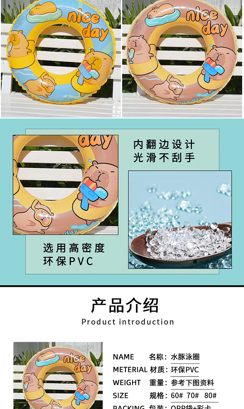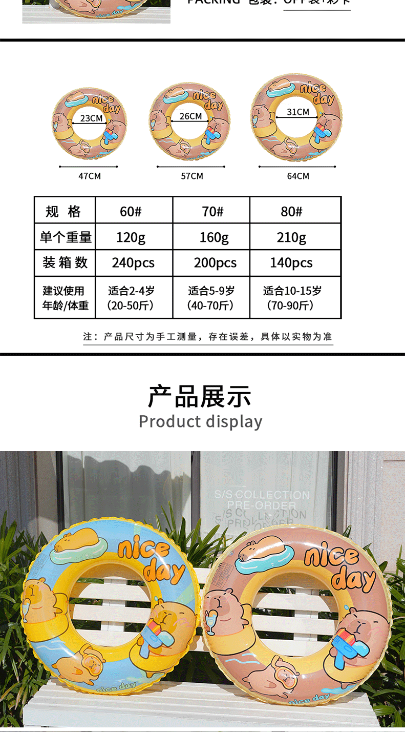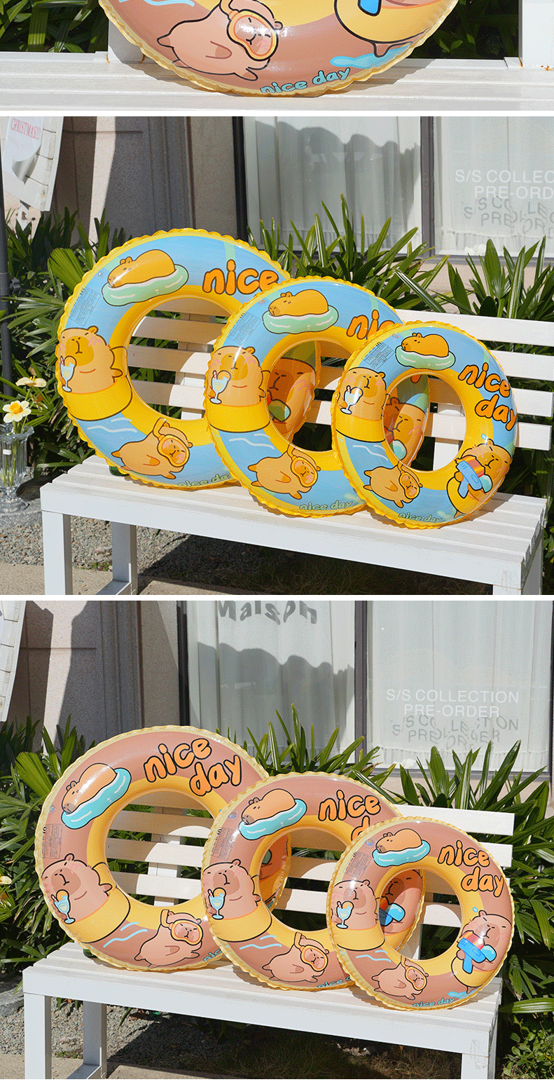 | Diámetro interior después de inflar | Kapibala (amarillo),Kapibala (azul),Gato KT de lunares translúcido,Cachorro a cuadros translúcido,Flotador de Natación de Shin-chan - Azul Verano,Crayón Shin-chan-Rosa de verano,Crayon Shin-chan (Impresión),Crayón Shin-chan (lentejuelas) |