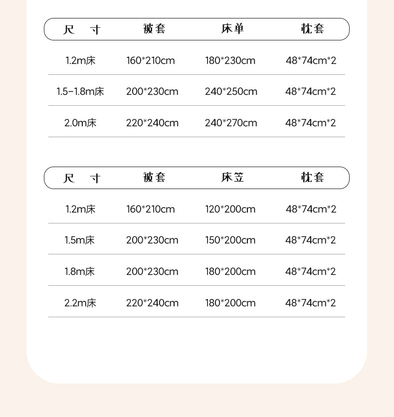| Especificaciones de tamaño | Cama de 0,9 m [Juego de sábanas de cuatro piezas] Adecuado para edredón de 150x200cm,Cama de 1,2 m [Juego de sábanas de cuatro piezas] adecuado para núcleo de edredón de 150x200cm,Cama de 1,5 m [Juego de sábanas de cuatro piezas] Adecuado para edredón de 200x230cm,Cama de 1,8 m [Juego de sábanas de cuatro piezas] adecuado para edredón de 200x230cm,Cama de 2.0m [Juego de sábanas de cuatro piezas] Adecuado para edredón de 220x240cm,Cama de 1,5 m [juego de cuatro piezas de sábana] adecuada para edredón de 200x230cm,Cama de 1,8 m [juego de cuatro piezas de sábana] adecuado para edredón de 200x230cm |