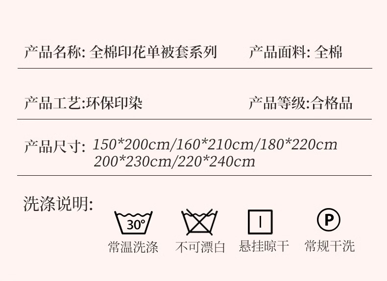 | Especificaciones de tamaño | Cama de dormitorio para estudiantes [Juego de sábanas de tres piezas]-Adecuado para edredón de 150*200cm,Cama de 1,2 m [juego de sábanas de tres piezas]-adecuado para núcleo de edredón de 150*200cm,Cama de 1,5 m [Juego de sábanas de cuatro piezas]-Adecuado para edredón de 200*230cm,Cama de 1,8 m [Juego de sábanas de cuatro piezas]-Adecuado para edredón de 200*230cm,Cama de 2.0m [Juego de sábanas de cuatro piezas]-Adecuado para edredón de 220*240cm,Cama de 1,5 m [juego de cuatro piezas de sábana]-adecuada para edredón de 200*230cm,Cama de 1,8 m [juego de cuatro piezas de sábana]-adecuado para edredón de 200*230cm |