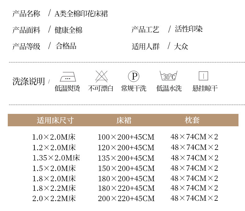 | Especificaciones de tamaño | Falda de cama individual # cln #120*200cm [La altura de la falda es de aproximadamente 45cm],Falda de cama individual # cln #150*200cm [La altura de la falda es de aproximadamente 45cm],Falda de cama individual # cln #180*200cm [La altura de la falda es de aproximadamente 45cm],Falda de cama individual # cln #200*220cm [La altura de la falda es de aproximadamente 45cm],Falda de cama de dos piezas # cln #120*200cm funda de almohada,Falda de cama de tres piezas # cln #150*200cm funda de almohada par,Falda de cama de tres piezas # cln #180*200cm funda de almohada par,Falda de cama de tres piezas # cln #200*220cm par de fundas de almohada |