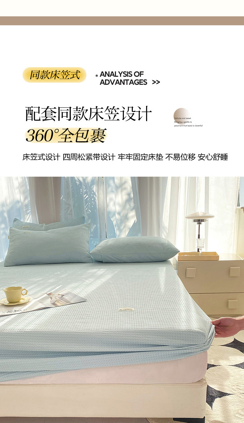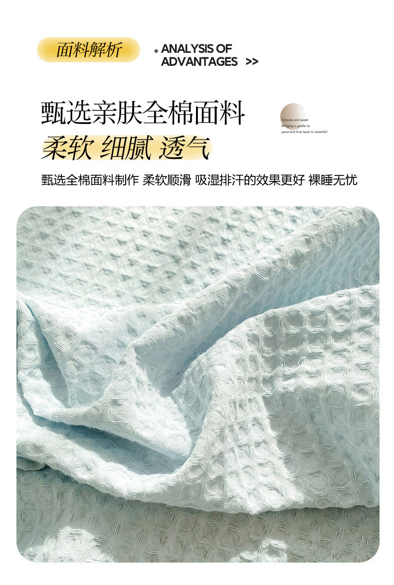 | Especificaciones de tamaño | Sombrilla waffle pieza individual-150x200cm [adecuado para colchones de 5-28cm],Sombrilla waffle pieza individual-180x200cm [adecuado para colchones de 5-28cm],Sombrilla Waffle de una sola pieza-200x220cm [adecuado para colchones de 5-28cm],Juego de cama waffle de tres piezas-un par de fundas de almohada de cama 150x200cm,Juego de cama waffle de tres piezas-un par de fundas de almohada de cama de 180x200cm,Juego de cama waffle de tres piezas-un par de fundas de almohada de cama 200x220cm,Sombrilla waffle pieza individual-90x200cm [adecuado para colchones de 5-28cm],Sombrilla waffle pieza individual-120x200cm [adecuado para colchones de 5-28cm],Juego de cama waffle de tres piezas-par de funda de almohada de cama de 90x200cm,Juego de cama waffle de tres piezas-un par de fundas de almohada de cama 120x200cm |