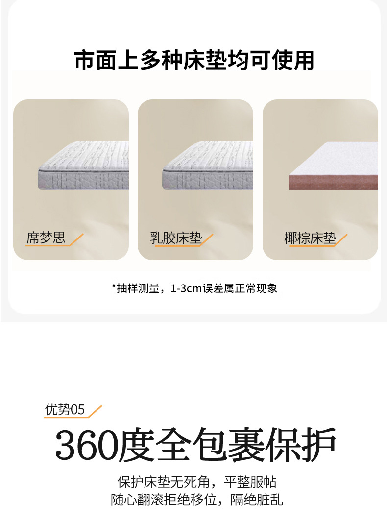 | Especificaciones de tamaño | Sombrilla de cama individual de 120*200cm [para colchones de 5-15cm de espesor],Sombrilla de cama individual de 150*200cm [para colchones de 5-28cm de espesor],Sombrilla de cama individual de 180*200cm [para colchones de 5-28cm de espesor],Juego de dos piezas de sábana [una funda de almohada de sábana de 120x200cm],Juego de sábanas de tres piezas [dos sábanas de 150x200cm],Juego de cama de tres piezas [dos fundas de almohada de cama de 180x200cm],Sombrilla de cama individual de 90*200cm [para colchones de 5-15cm de espesor],Sombrilla de cama individual de 200*220cm [para colchones de 5-28cm de espesor],Sombrilla de cama de dos piezas [una funda de almohada de cama de 90x200cm],Juego de sábanas de tres piezas [dos sábanas de 200x220cm] |