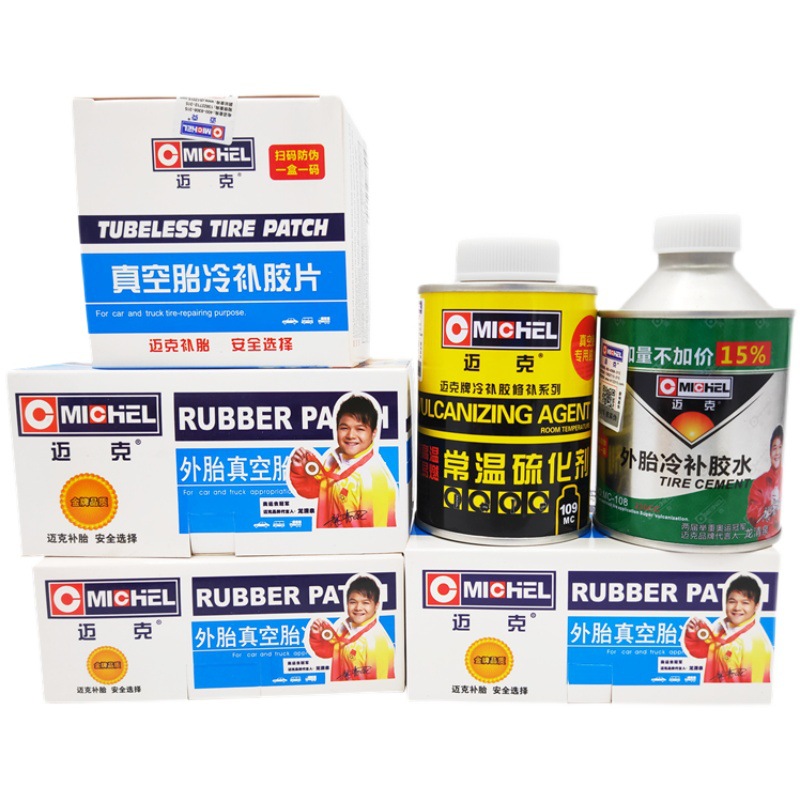 Juego completo de parches y herramientas para reparar neumáticos con cámara de aire para bicicletas, motocicletas y vehículos eléctricos, incluyendo pegamento para parches en frío y parches de reparación.