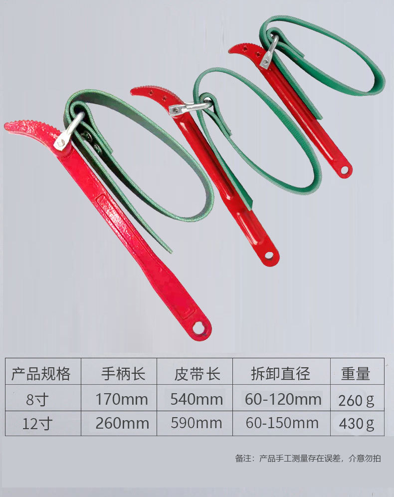 Llave de cinturón de 8 pulgadas * rojo Llave de cinturón de 8 pulgadas * verde Llave de cinturón de 12 pulgadas
