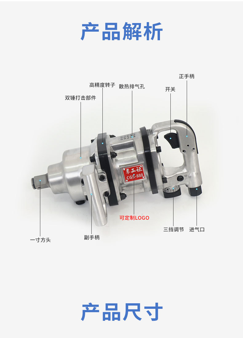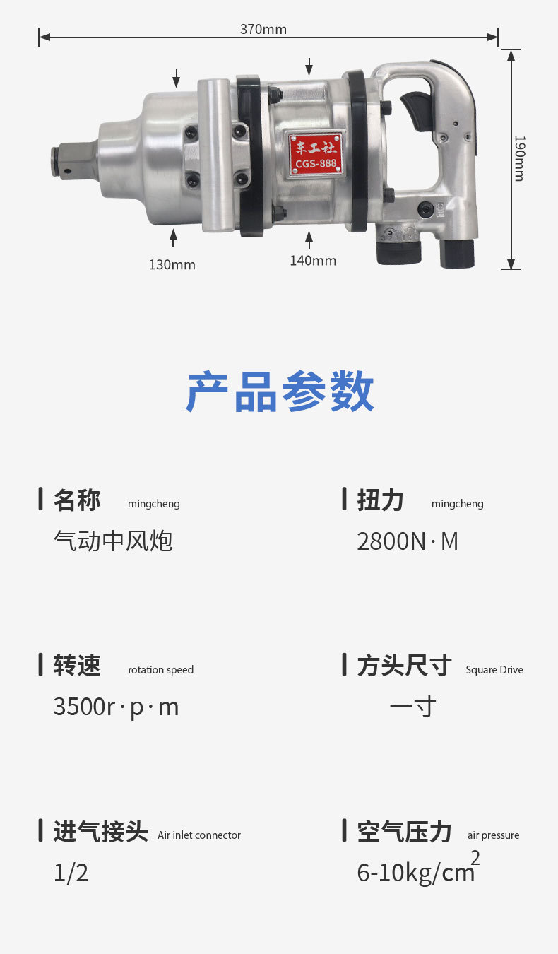 1 pulgada pesado cañón de aire de eje corto llave neumática CGS - 888 cañón de aire de aire de torsión fuerte cañón de aire montado en vehículos