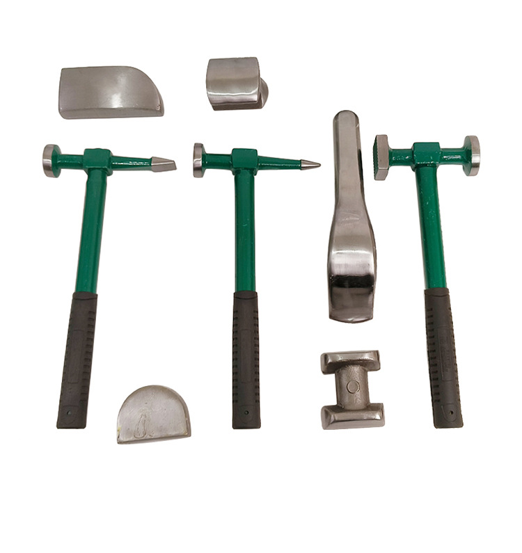 En stock suministro de hoja de metal martillo de reparación de chapa de automóvil combinación traje bloque de cojín redondo bloque de hierro plano 9 UNID
