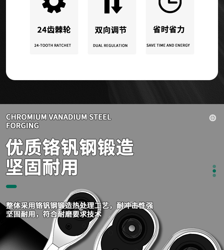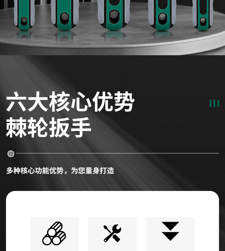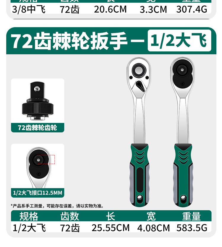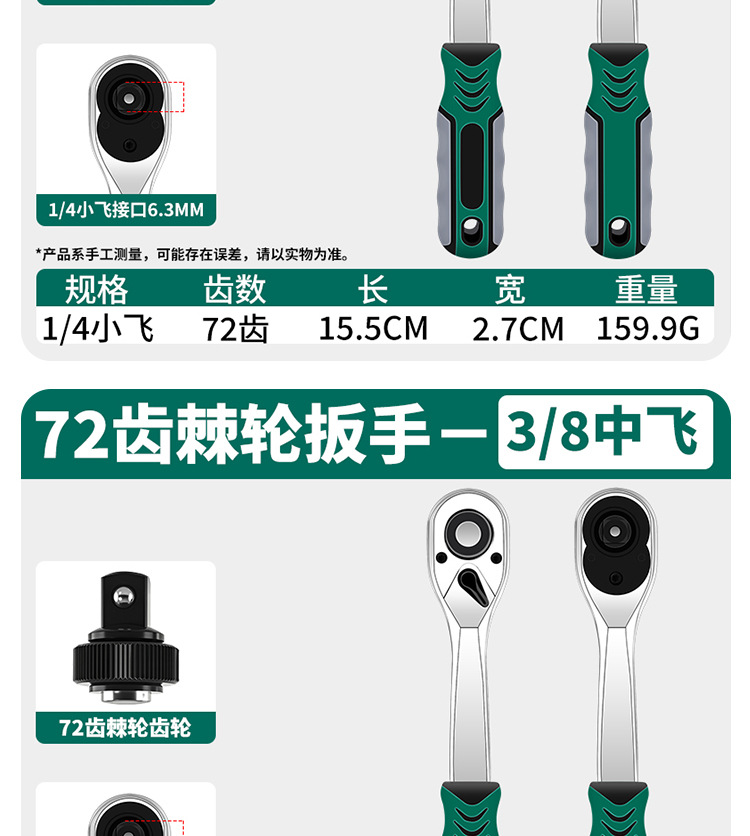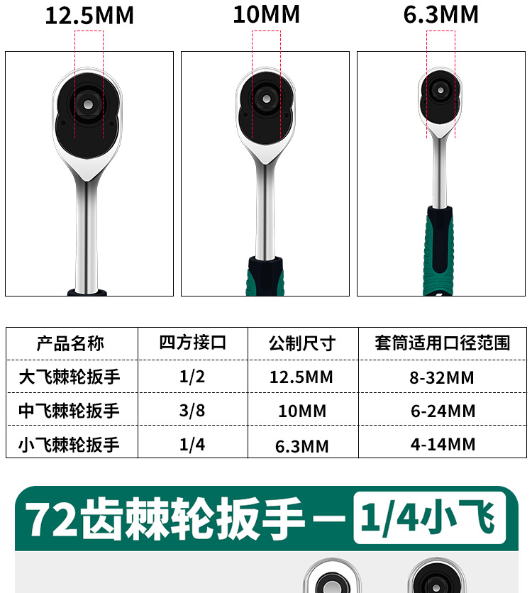 | Especificaciones y modelos | Llave de trinquete de 72 dientes [1 / 4 vuelo pequeño], llave de trinquete de 72 dientes [3 / 8 vuelo medio], llave de trinquete de 72 dientes [1 / 2 vuelo grande] |