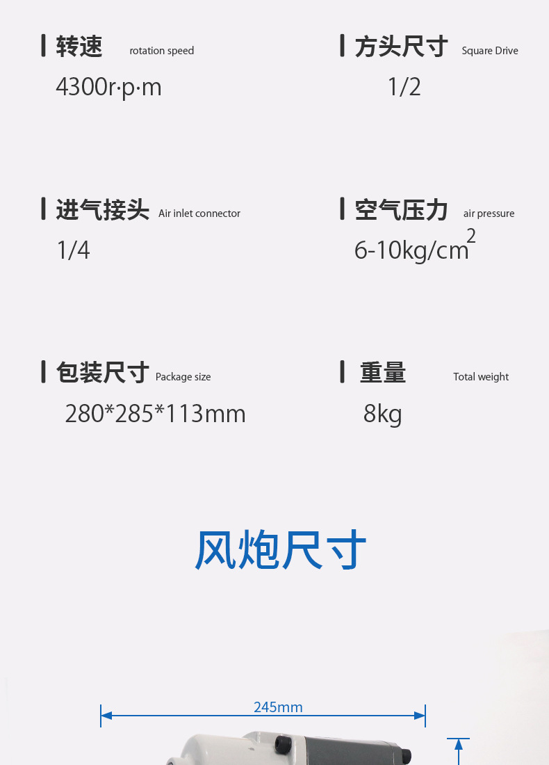 | Modelo de la especificación | 3/4-cabeza neumática pistola de aire medio (2000N M ·) * 280*285*113mm,Pistola de aire media neumática de 1 pulgada (2000N M ·) * 280*285*113mm |