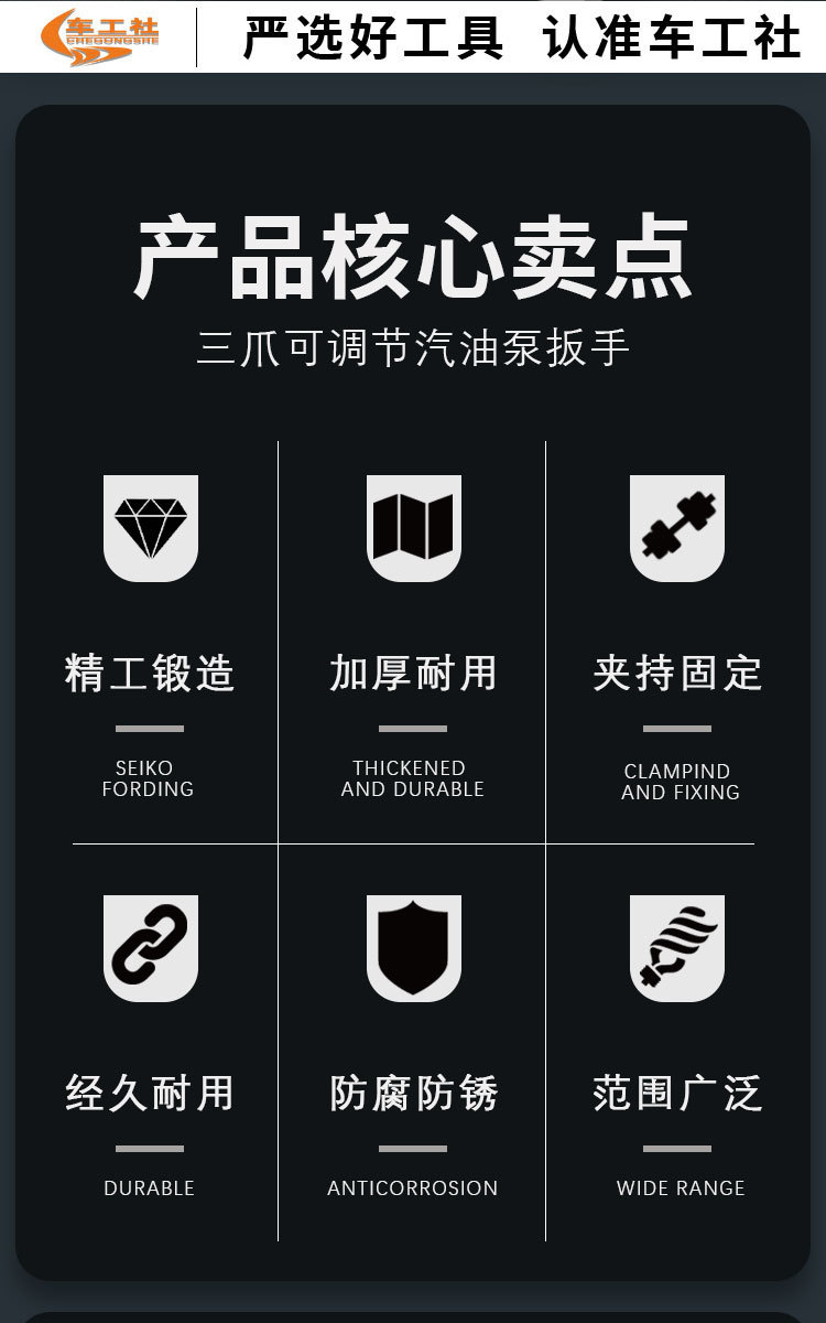 Herramienta extractora de tres mandíbulas para tapa de tanque de combustible de coche, llave ajustable para quitar tapa de bomba de gasolina, herramienta para extraer tapa de tanque de combustible de coche.