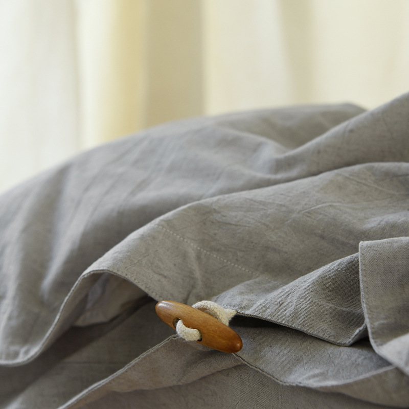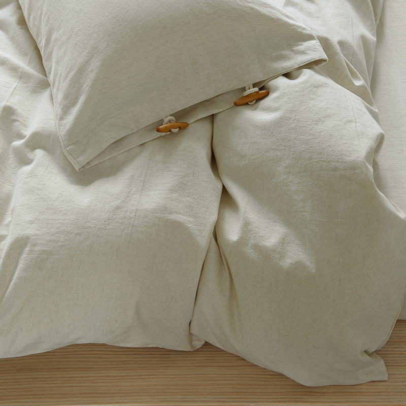 取自然棉与麻的纤维,按比例纺织而成。