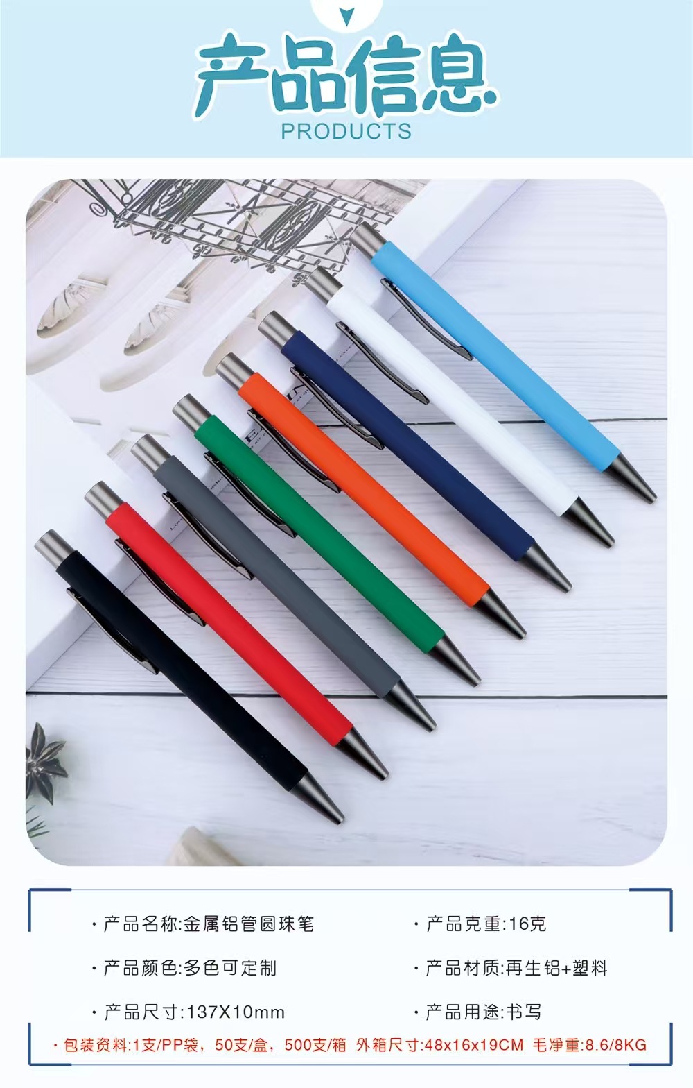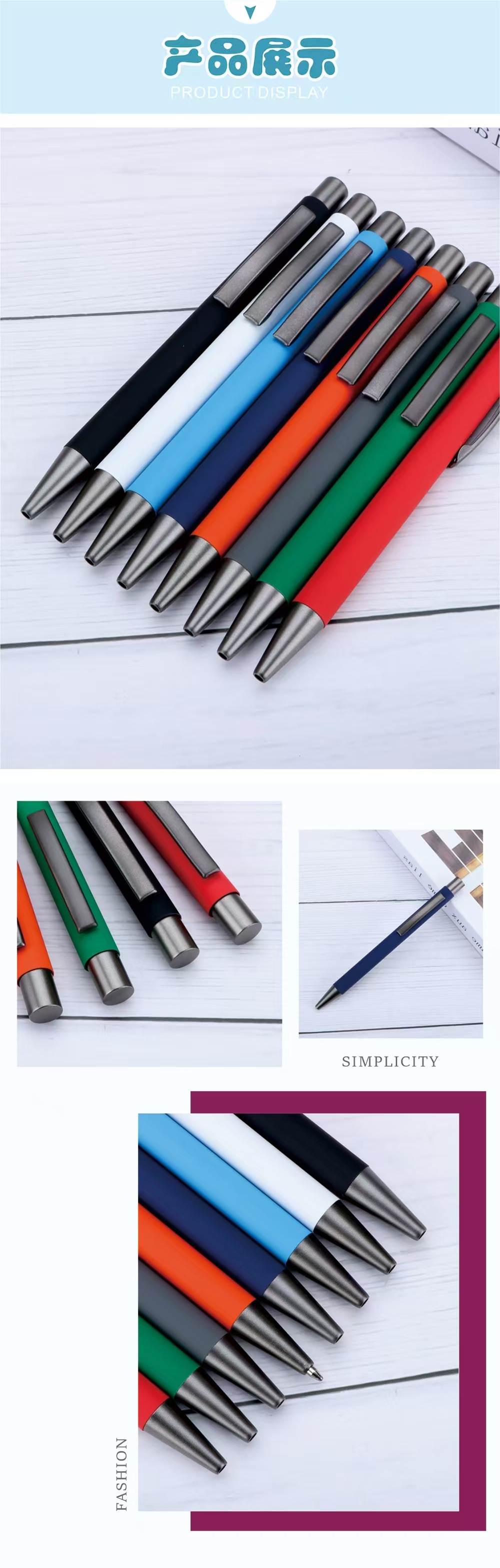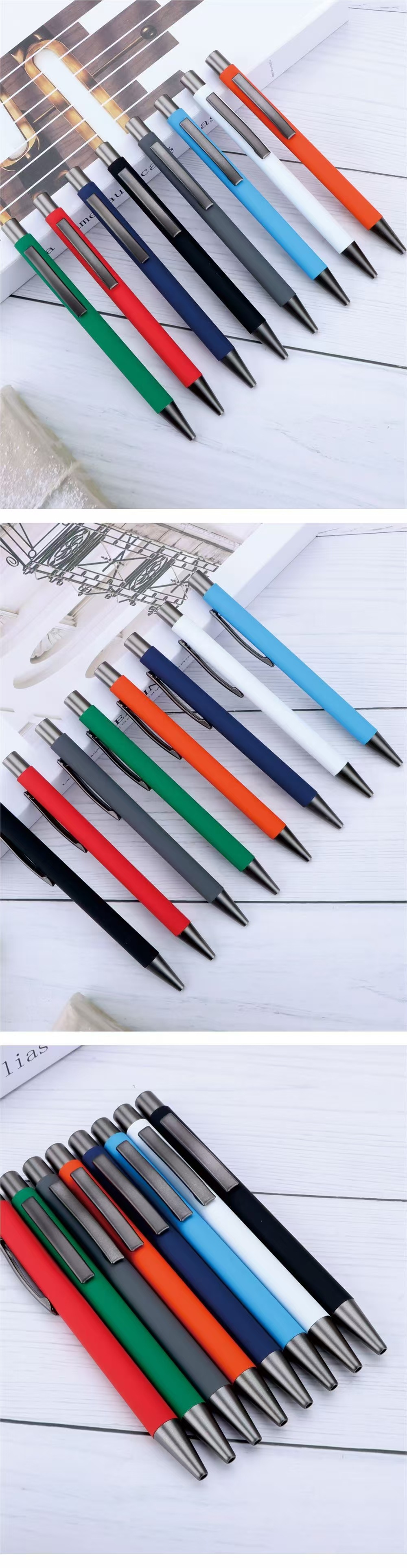 Hecho en stock, varios colores, procesamiento de pegamento en aerosol, bolígrafo de metal, bolígrafo de aluminio, bolígrafo de firma, bolígrafo de publicidad con logo neutro