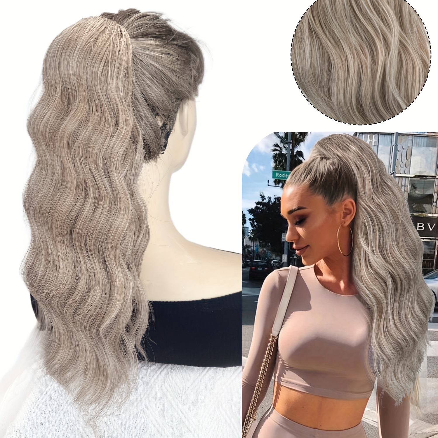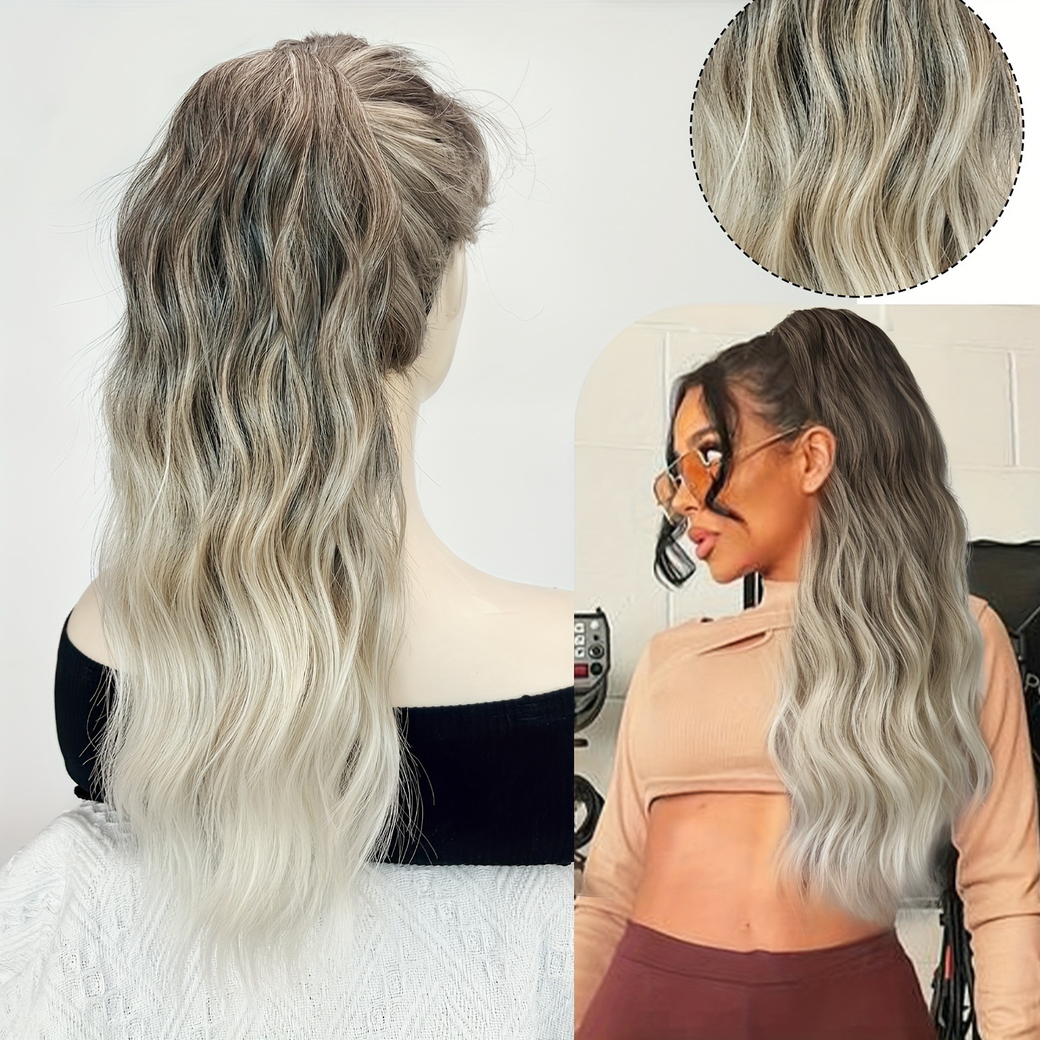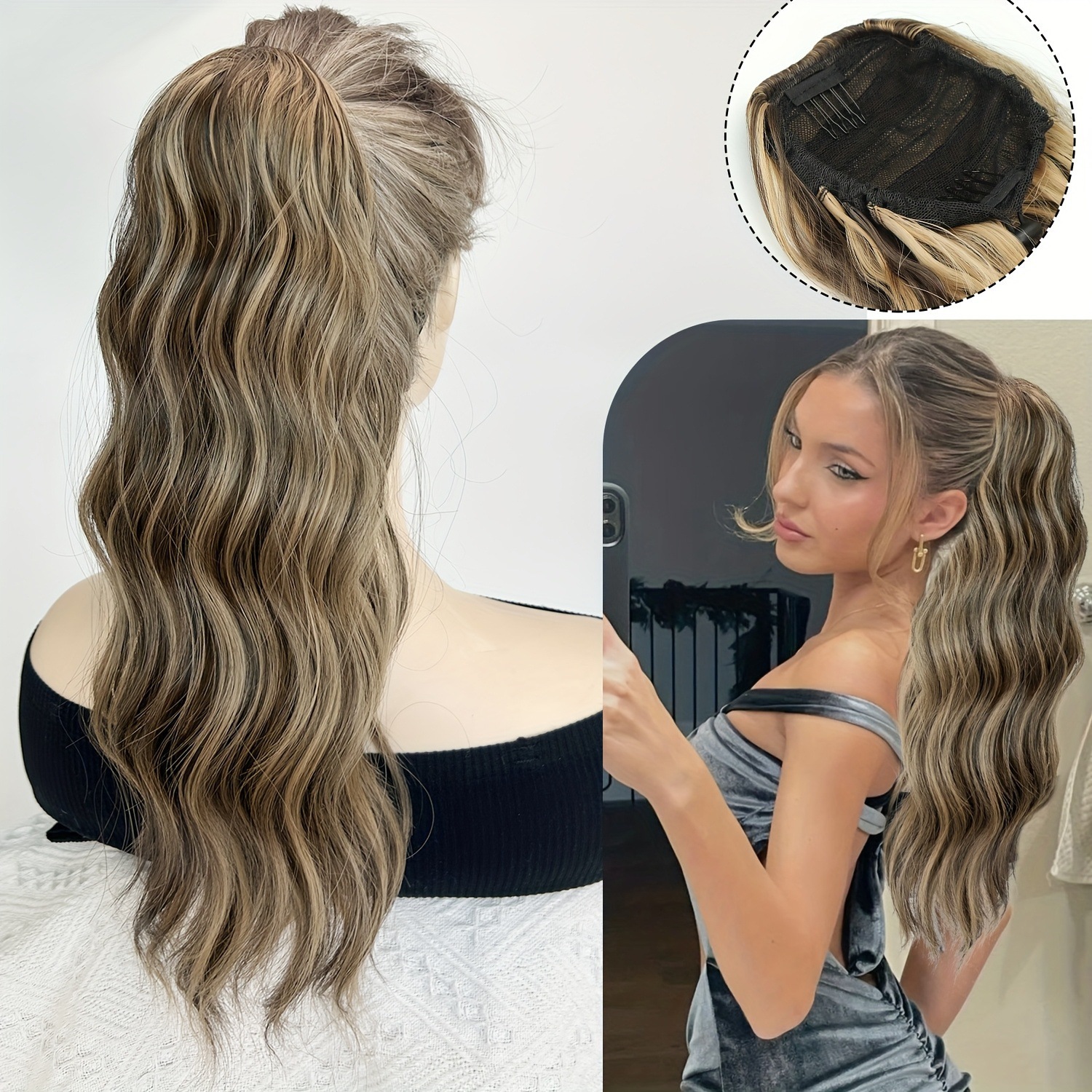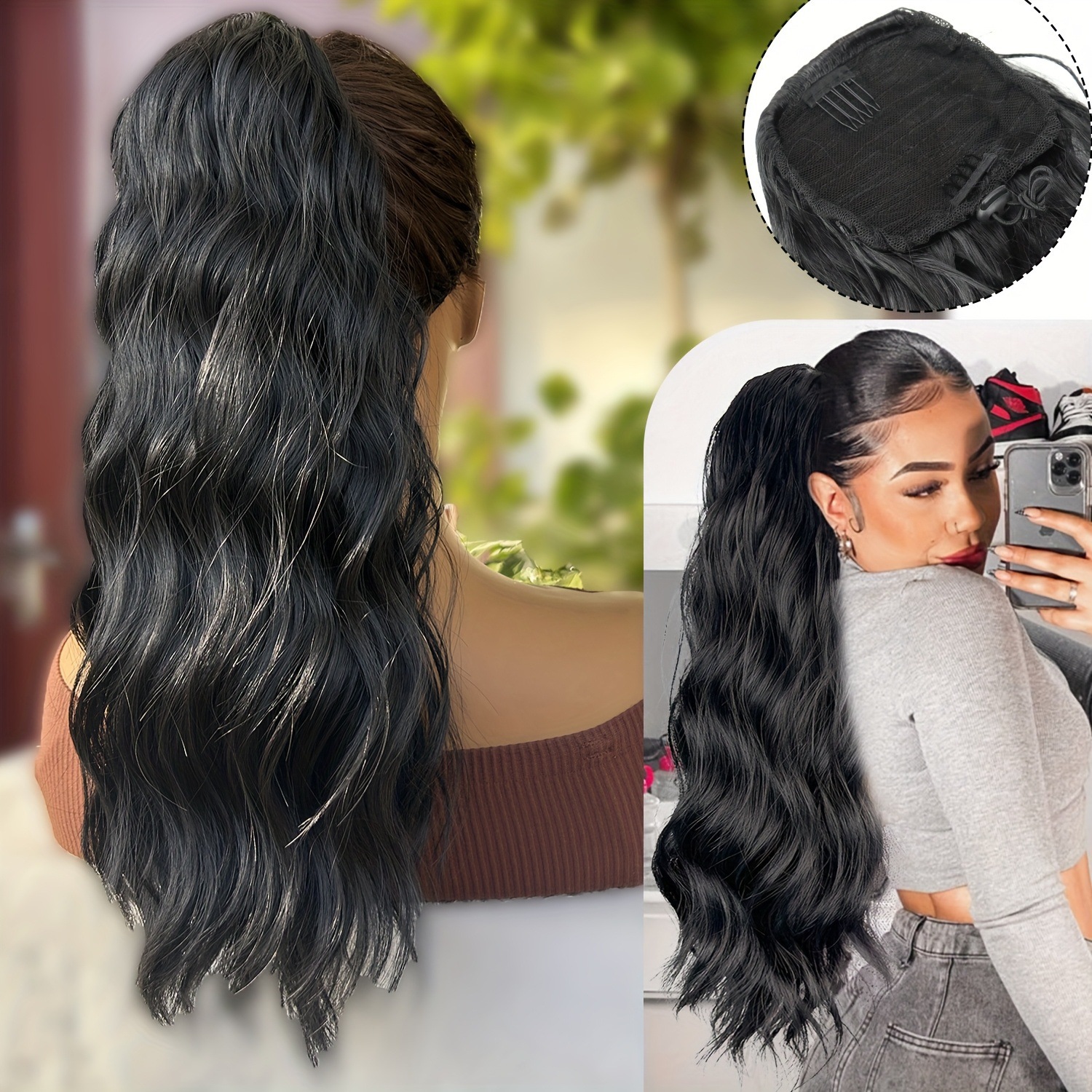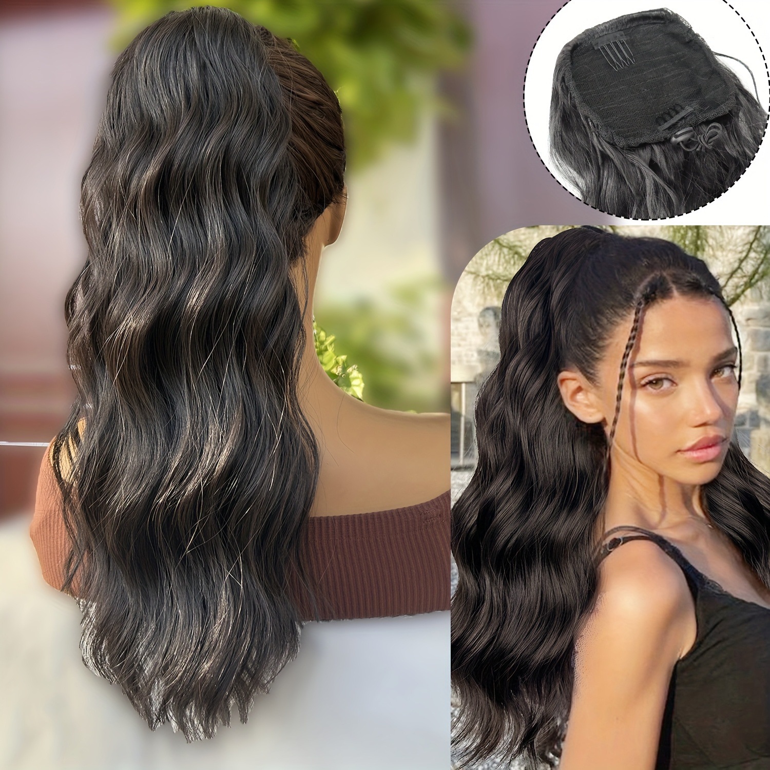 Cauda de caballo pelucas onduladas largas clip de cabello curl fibra sintética alta cola de caballo