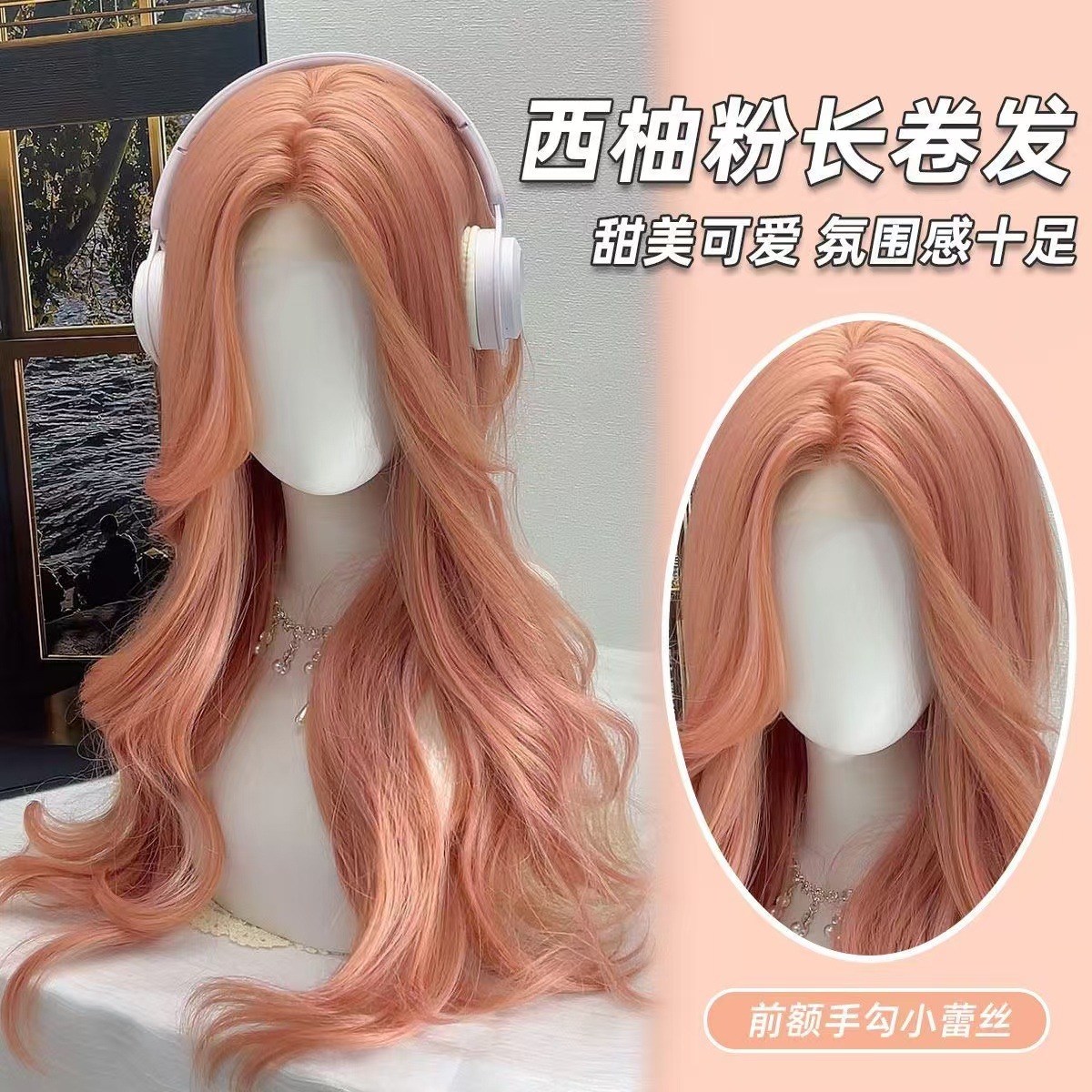 Dulce cos pomelo polvo largo rizado peluca fría de 8 caracteres encaje mate seda de alta temperatura blanco A07