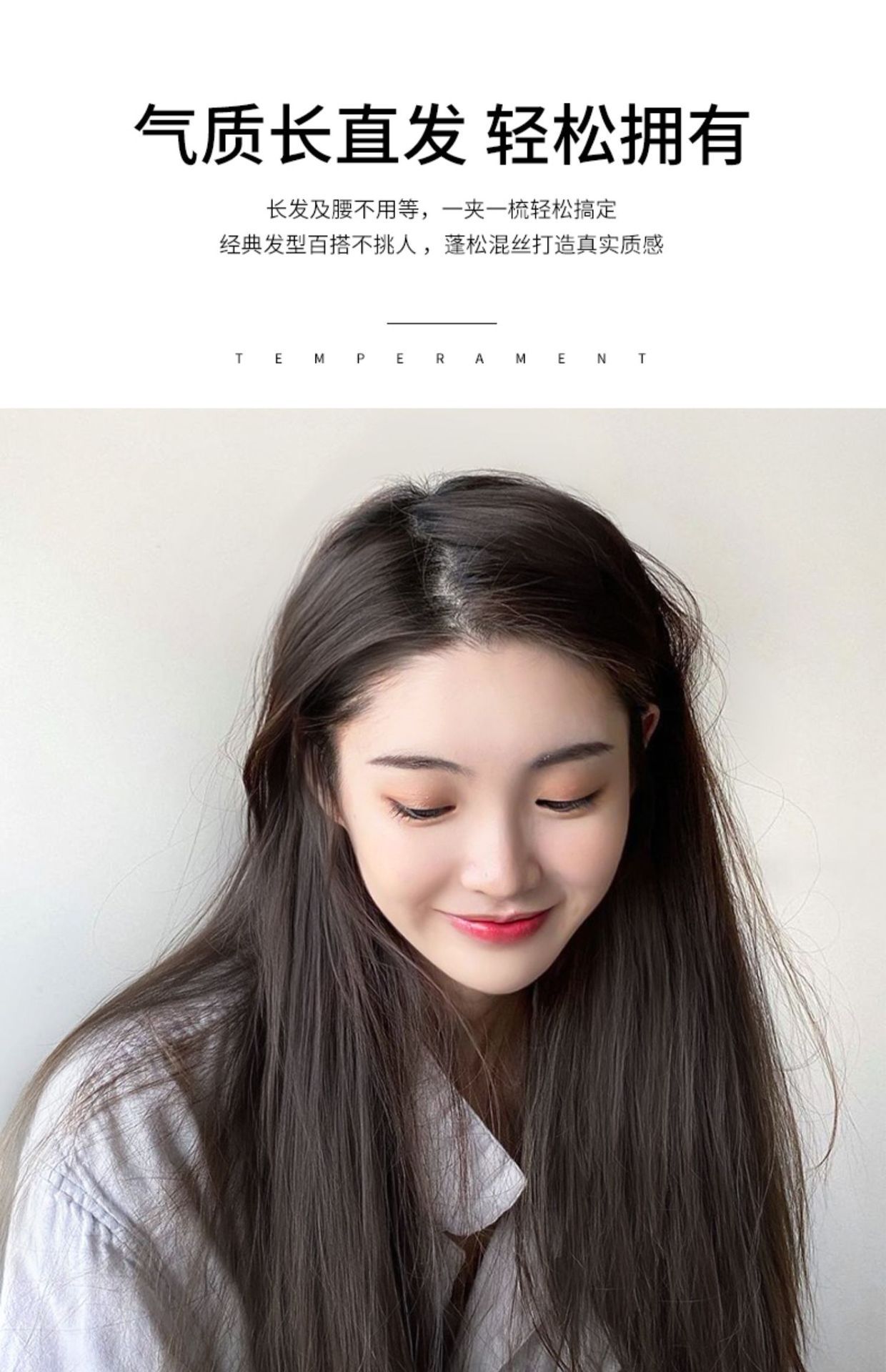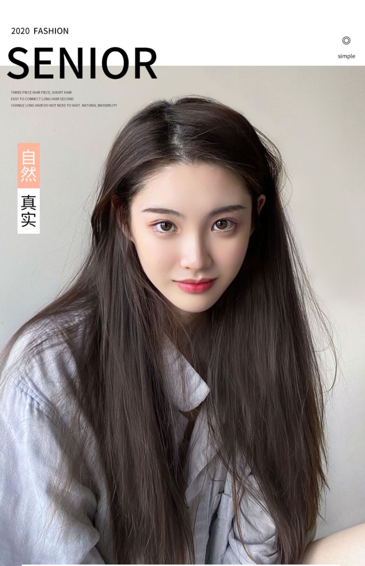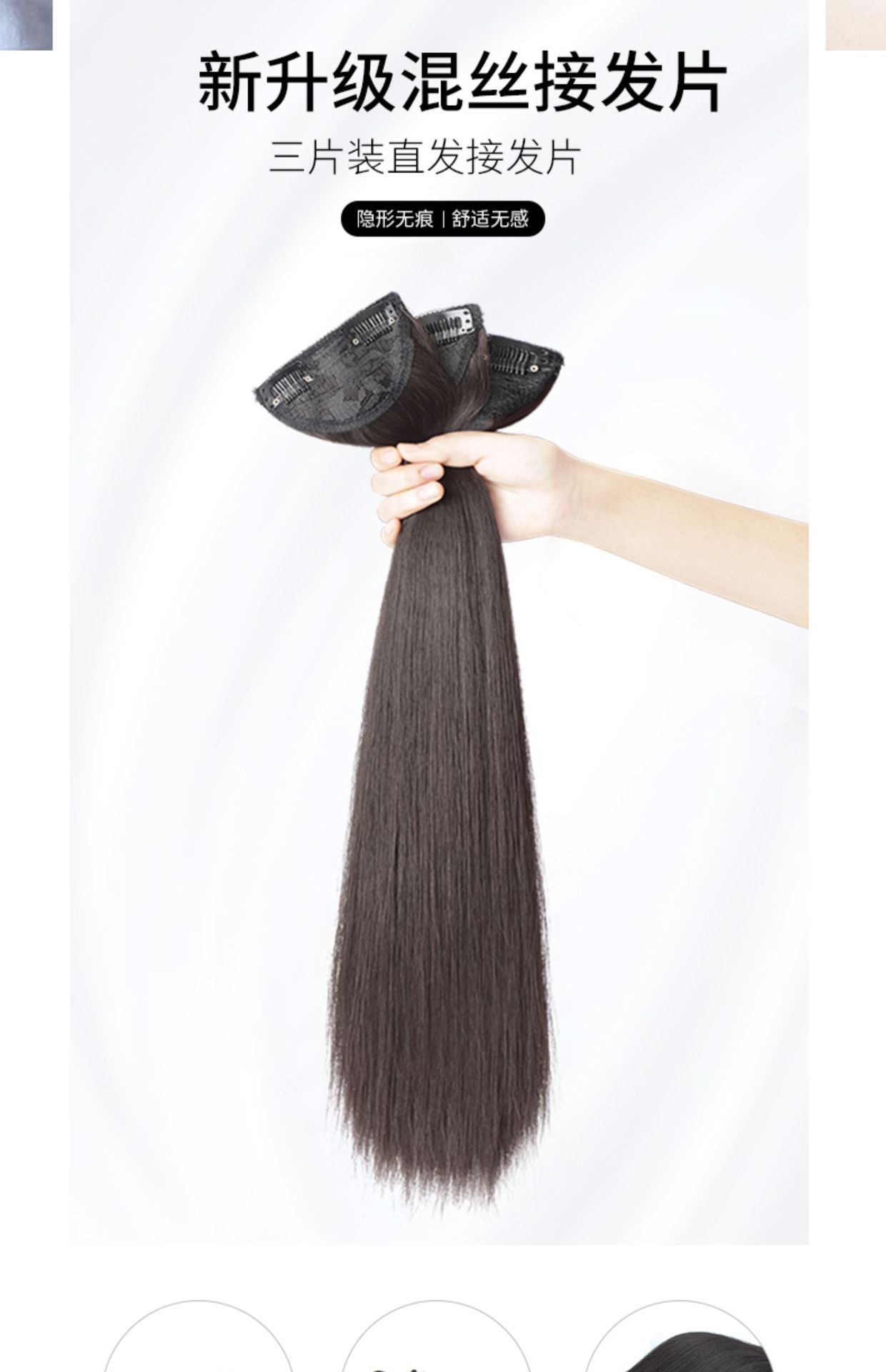 | Modelo | Tres piezas de cabello largo y recto |