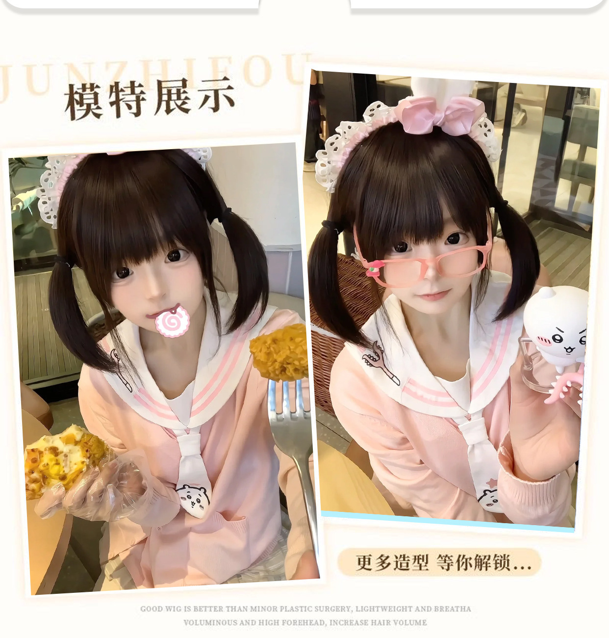 Peruca de cabello corto de mujer red rojo poco Luololita cabello corto recto puede atar doble cola de caballo natural Qi franjas de la cabeza completa 30CM