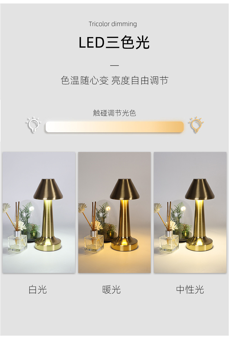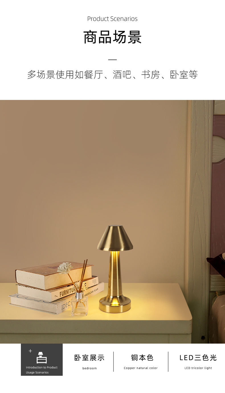 Transfronteriza dormitorio creativo mesita de noche lámpara de mesa decorativa Luz de lujo Nordic ins bar táctil retro metal mancuerna lámpara de mesa