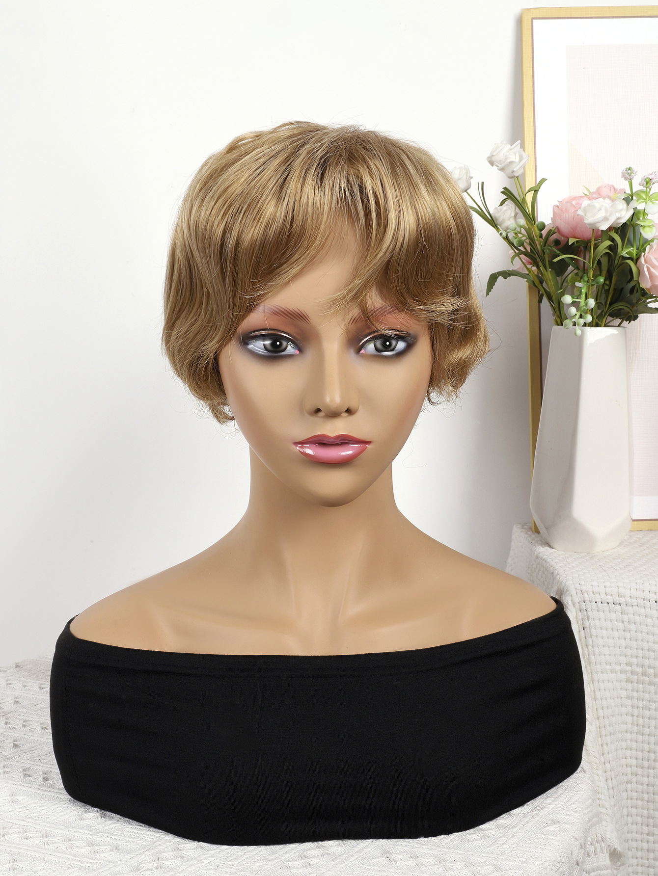 Peluca de pelo liso corto de estilo europeo y americano
